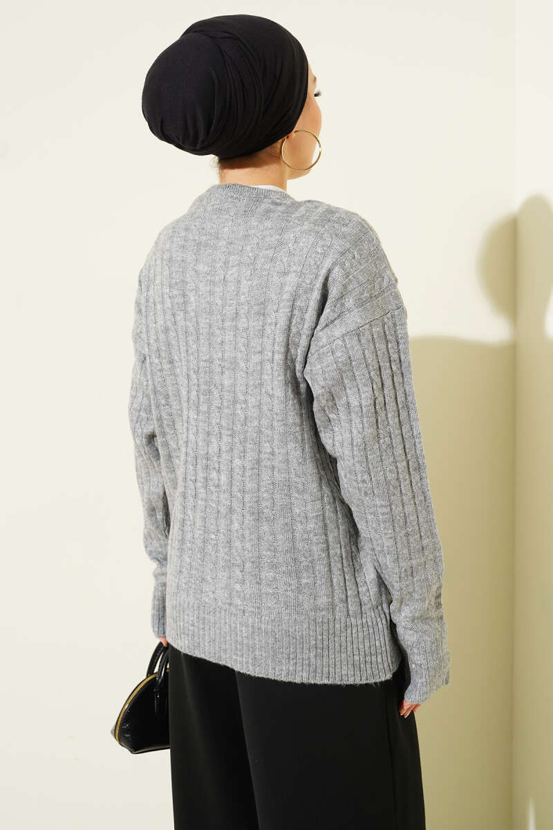 Atkılı Örgülü Kısa Triko Hırka Gri