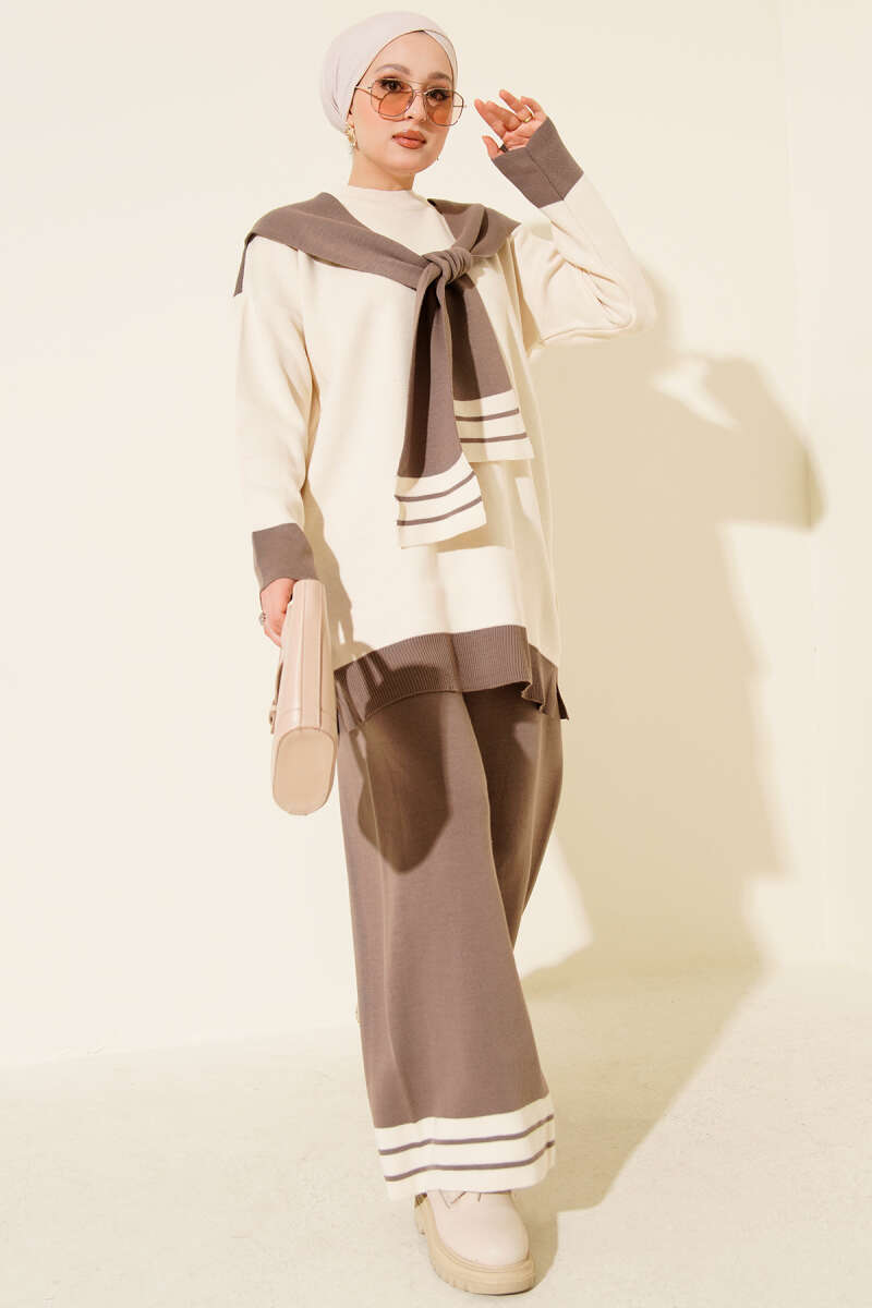 Önü Çımalı Basic İkili Takım Bej