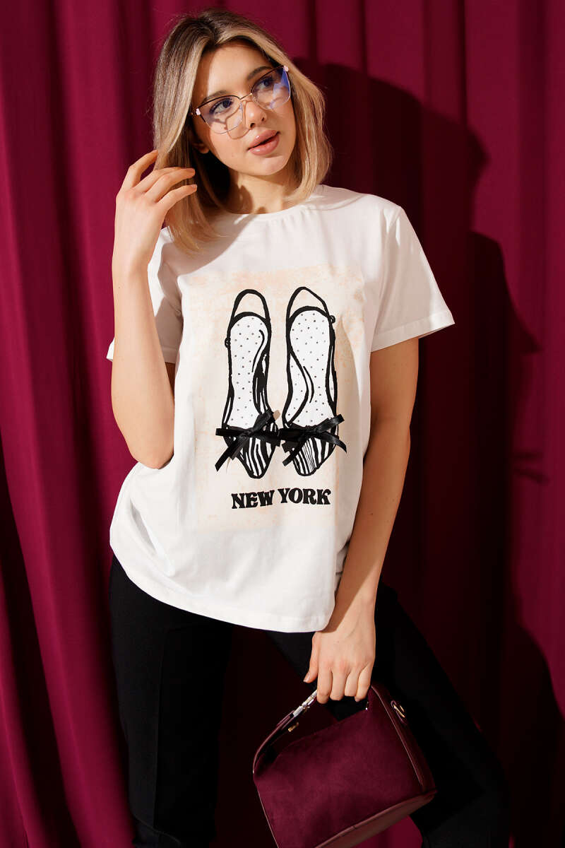 Ayakkabı Figürlü Baskılı T-shirt Ekru