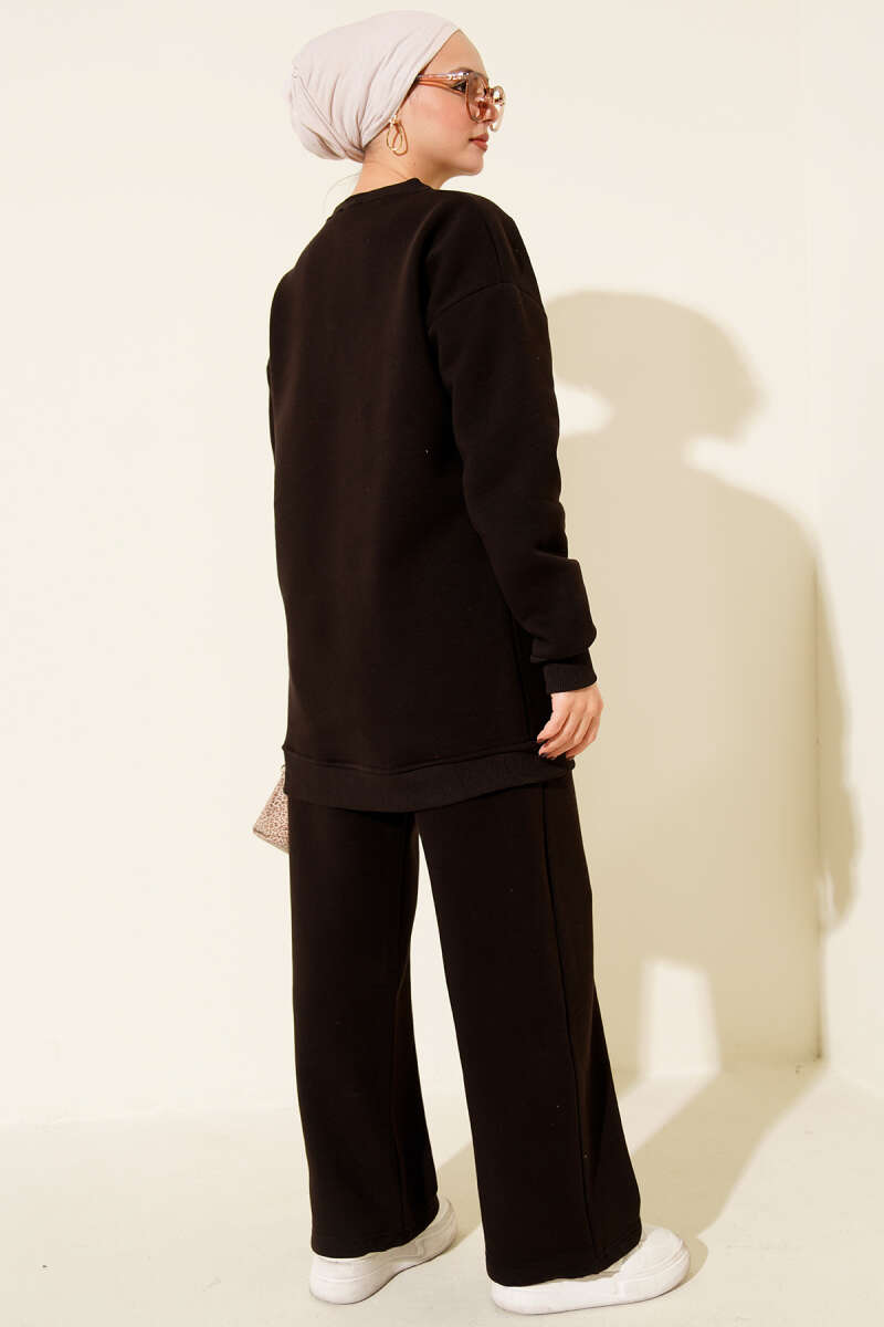 Taşlı Kanguru Cepli Loyşa İkili Takım Kahve