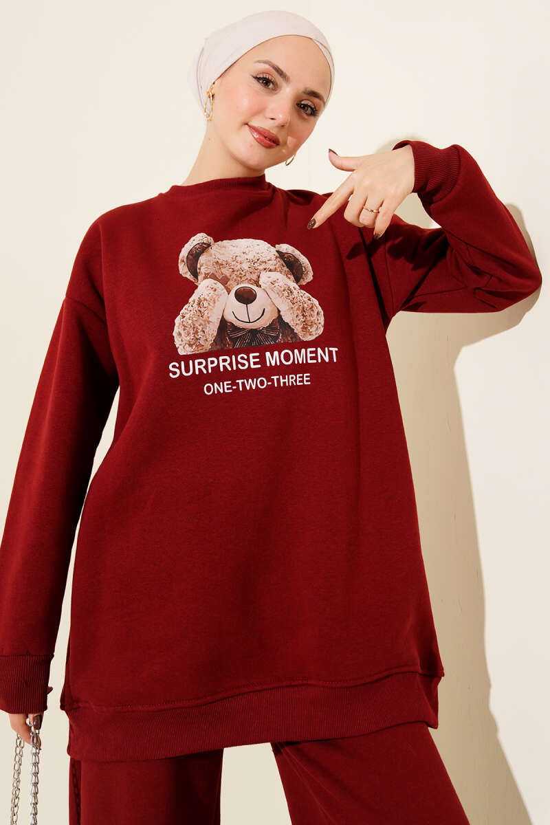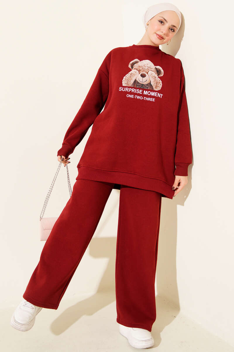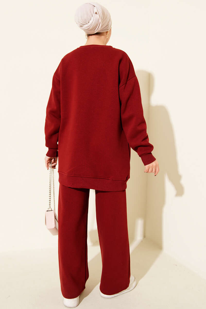Taşlı Kanguru Cepli Loyşa İkili Takım Bordo