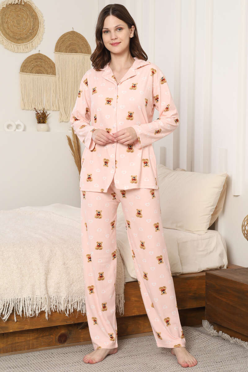 Ayıcık Desenli Düğmeli Süet Pijama Takımı Yavru Ağzı