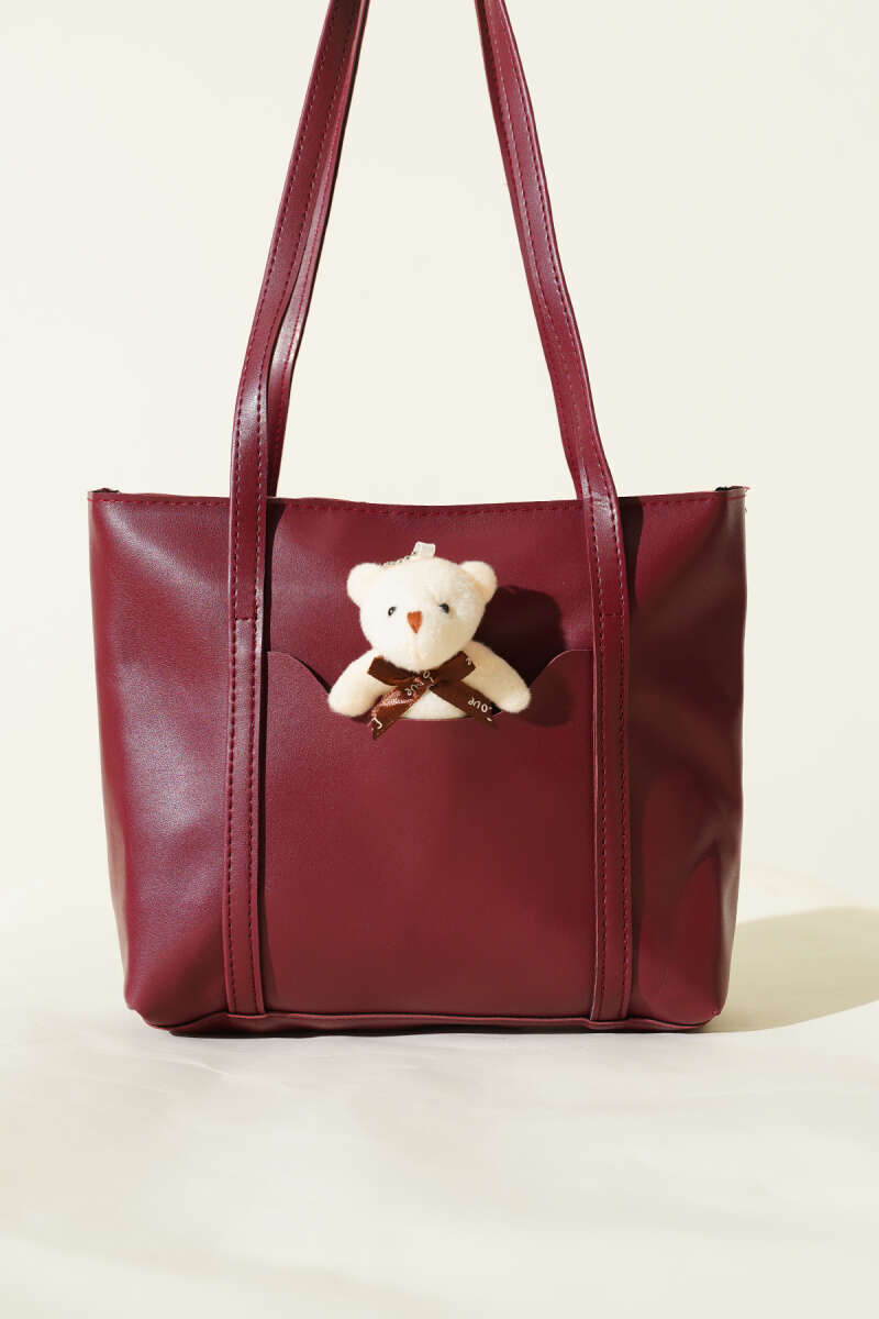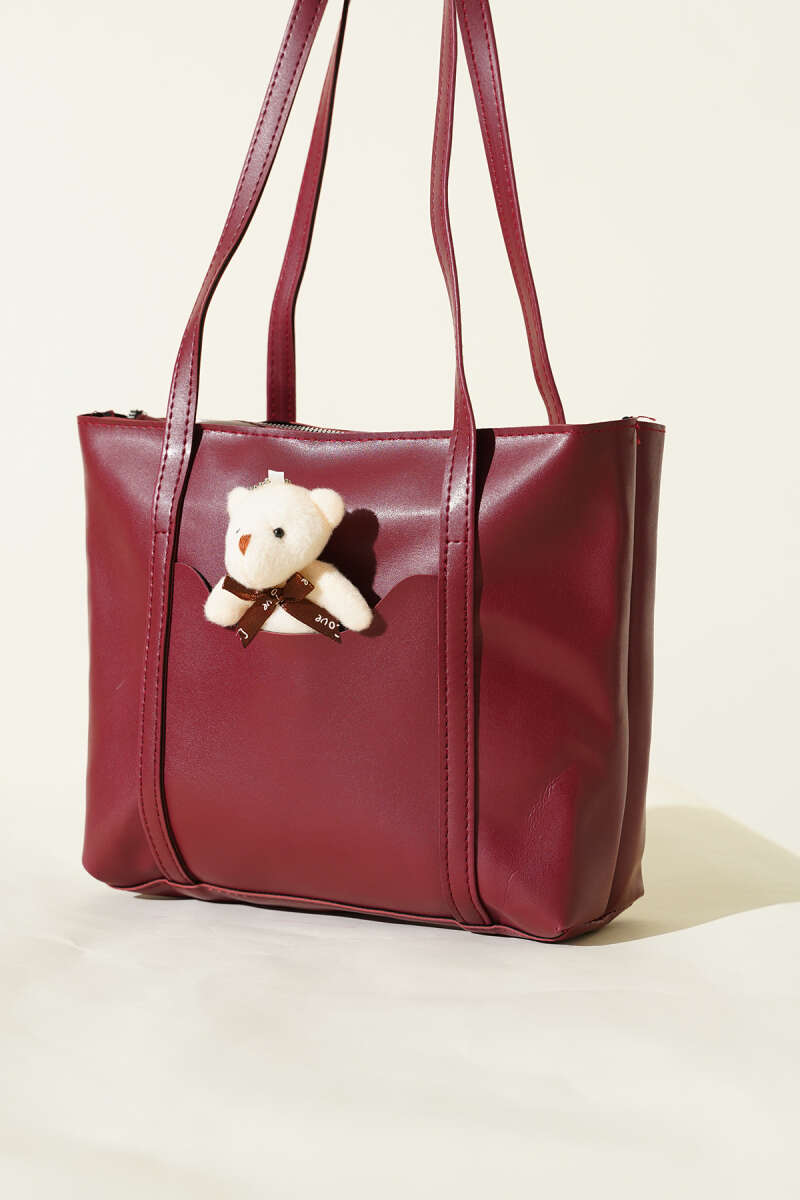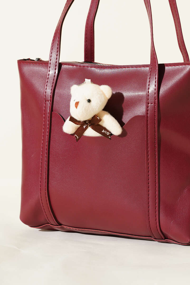 Ayıcık Detaylı Uzun Kulplu Kadın Çanta Acı Kahve