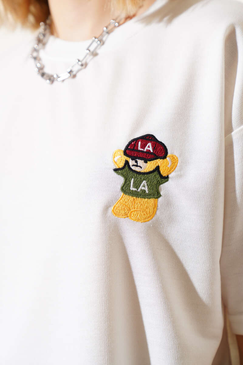 Ayıcık Nakışlı Basic T-shirt Ekru