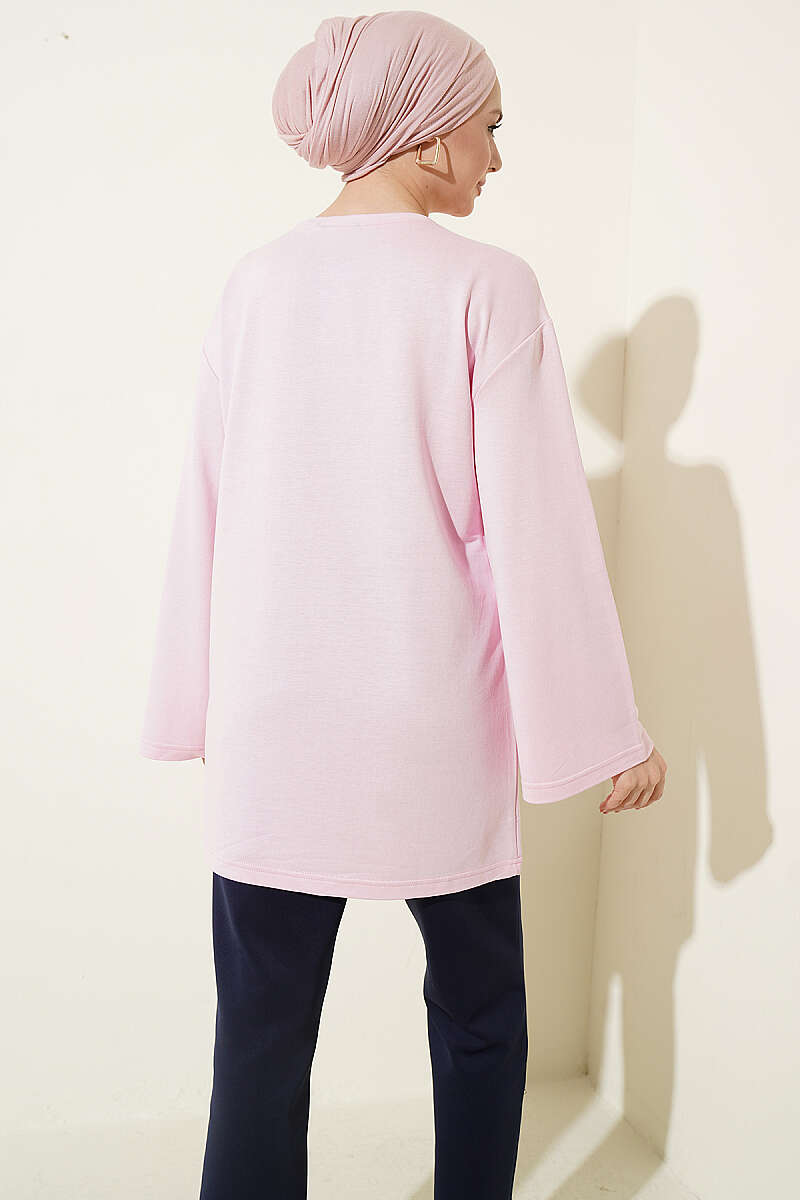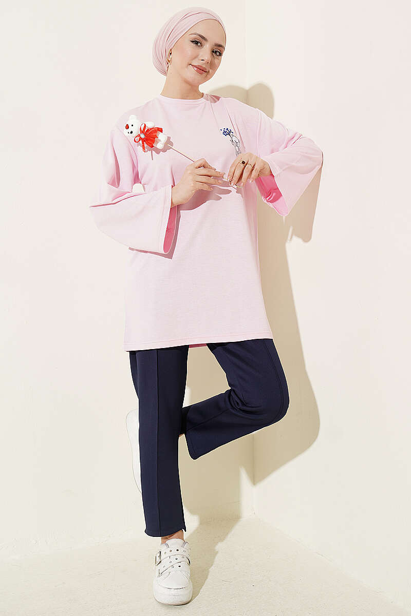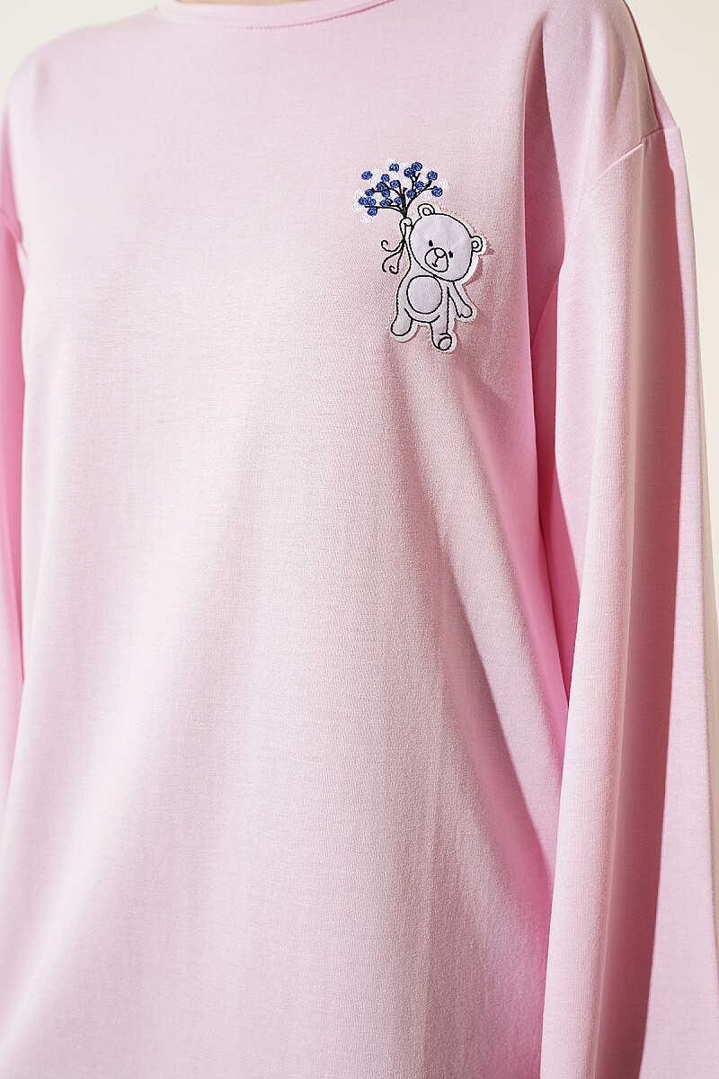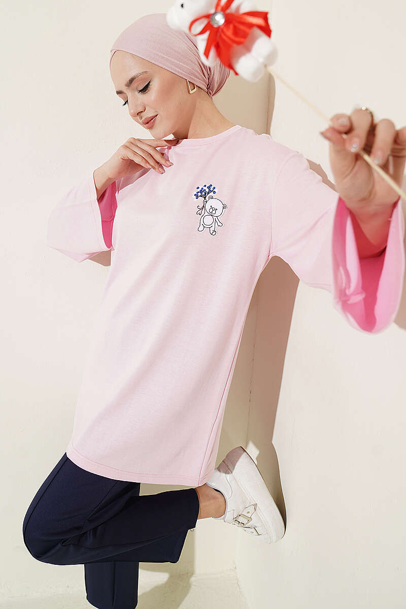 Ayıcık Nakışlı Loyşa Tunik Pembe