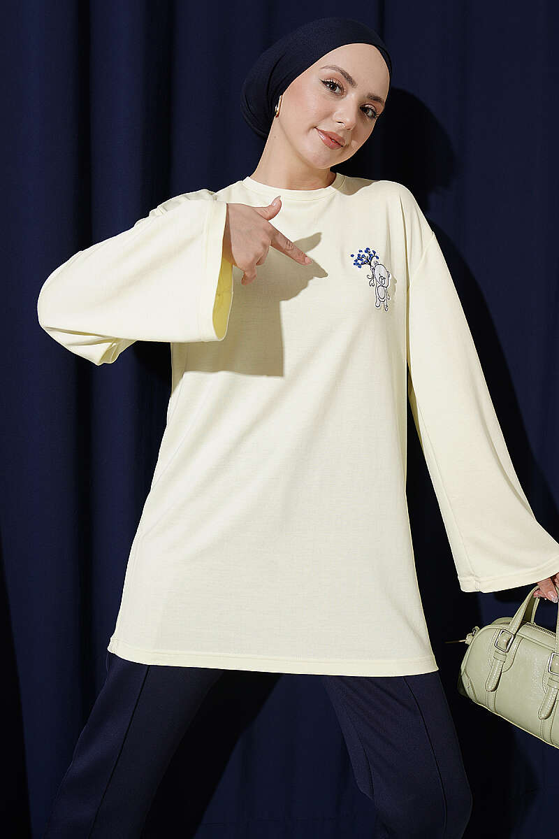 Ayıcık Nakışlı Loyşa Tunik Bej