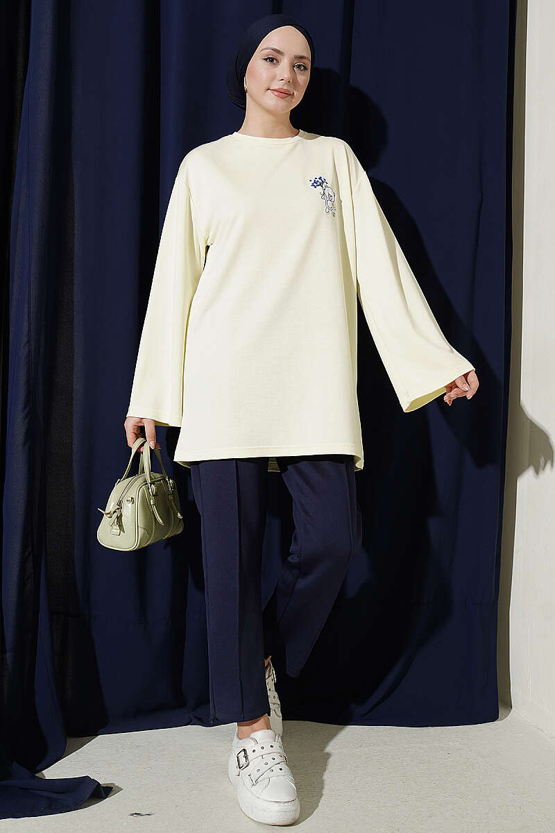 Ayıcık Nakışlı Loyşa Tunik Sarı