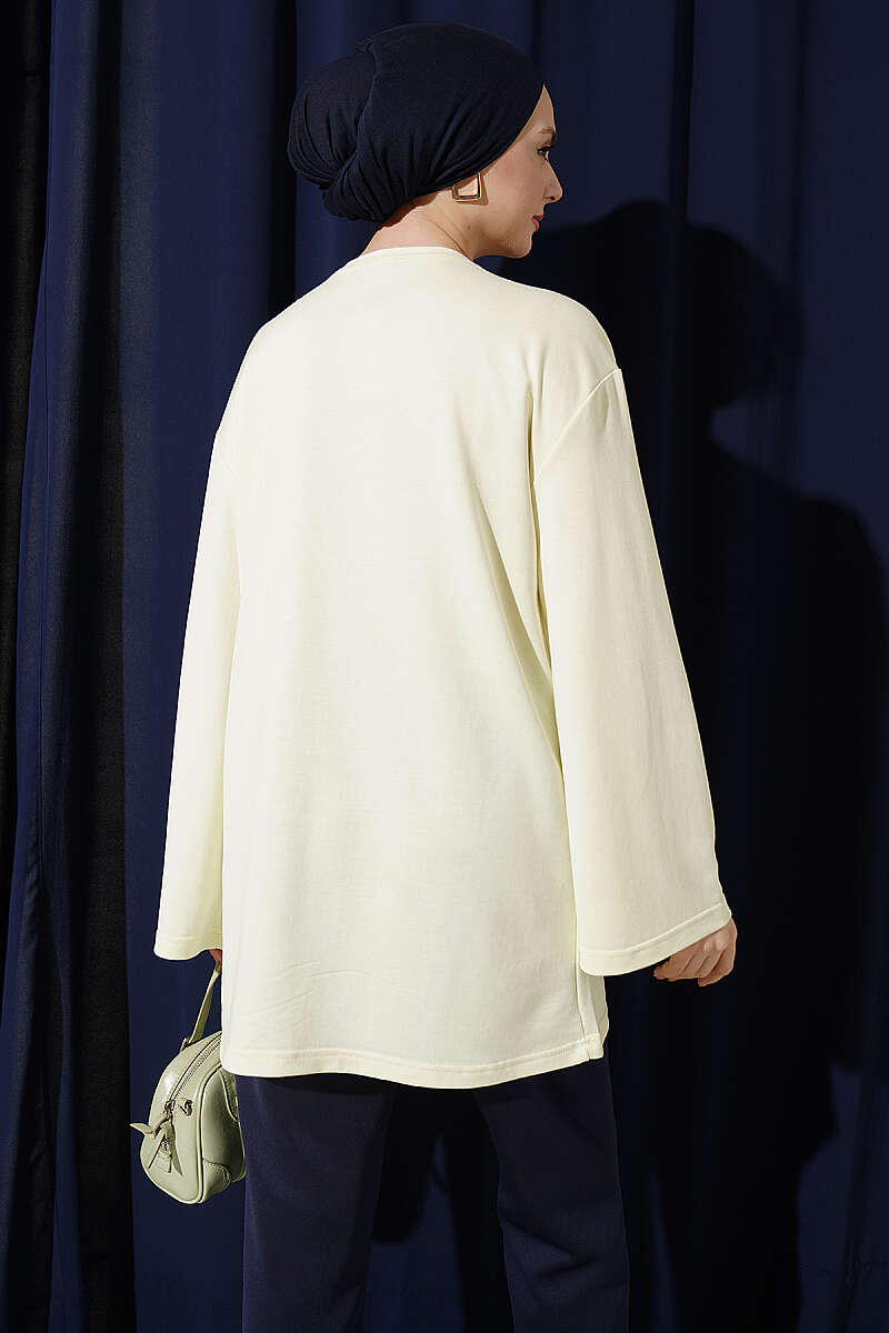 Yırtmaç Detaylı Tensel Uzun Tunik Bej