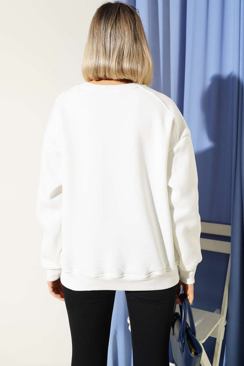 Ayıcıklı Üç İplik Gömlek Yaka Sweatshirt Ekru