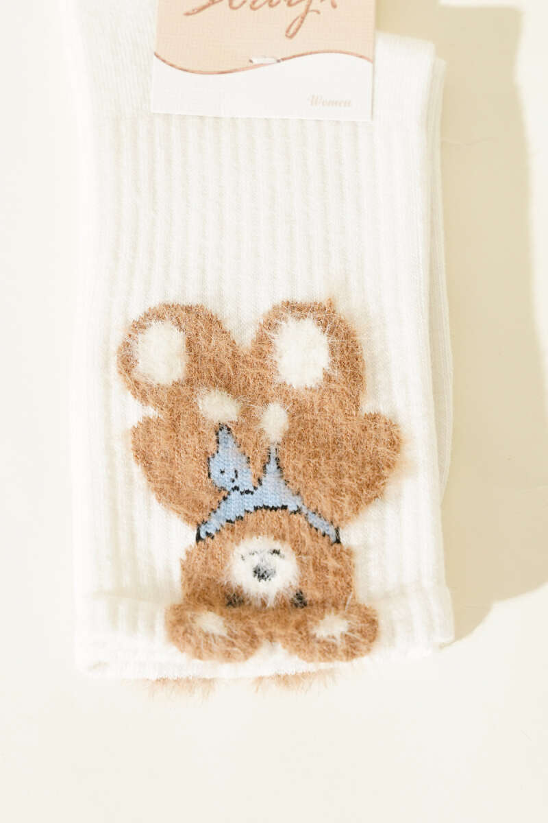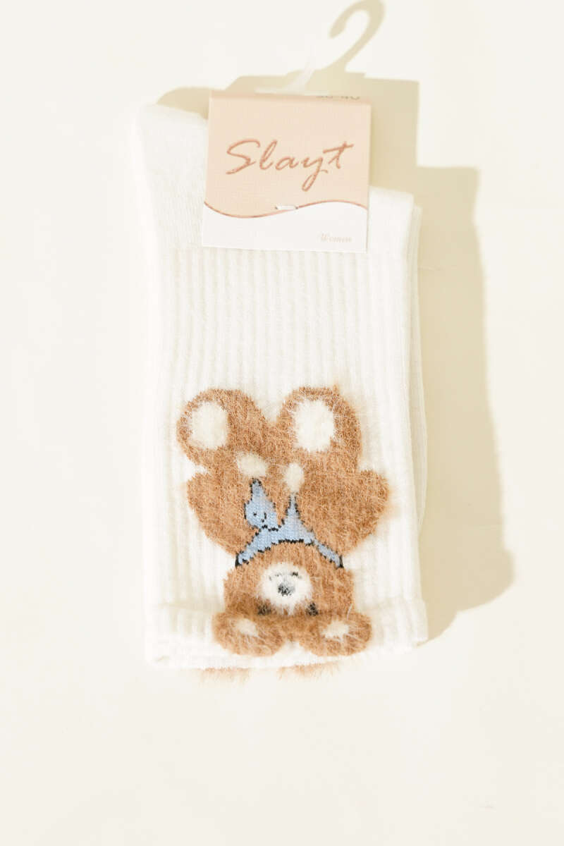 Ayıcık Sakallı Soket Kadın Çorap Ekru
