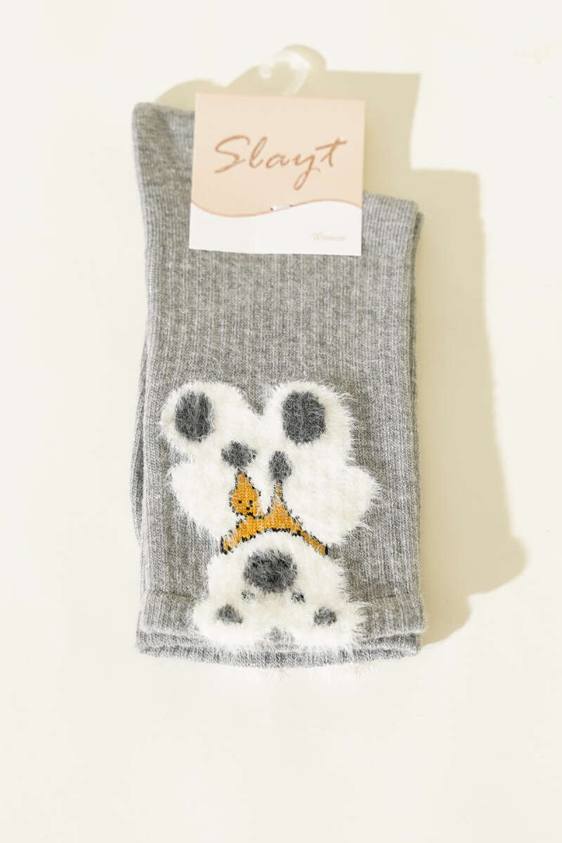 Ayıcık Sakallı Soket Kadın Çorap Gri