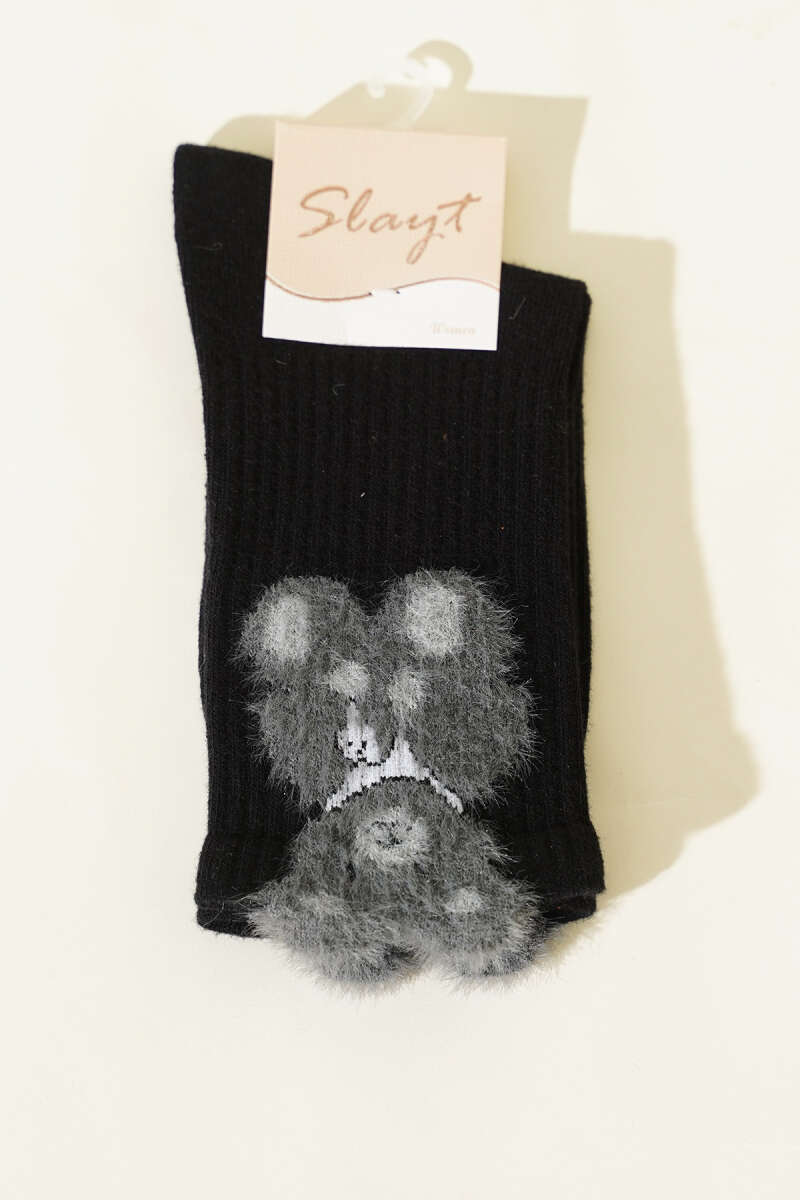 Ayıcık Sakallı Soket Kadın Çorap Siyah