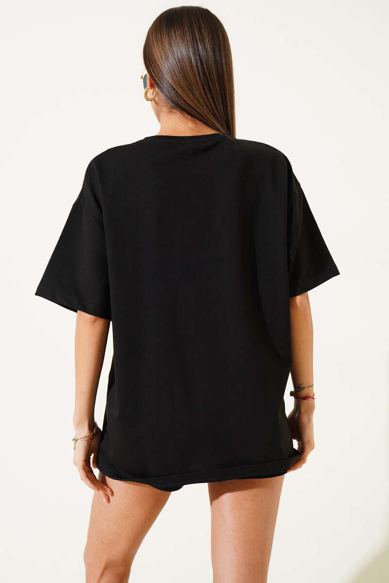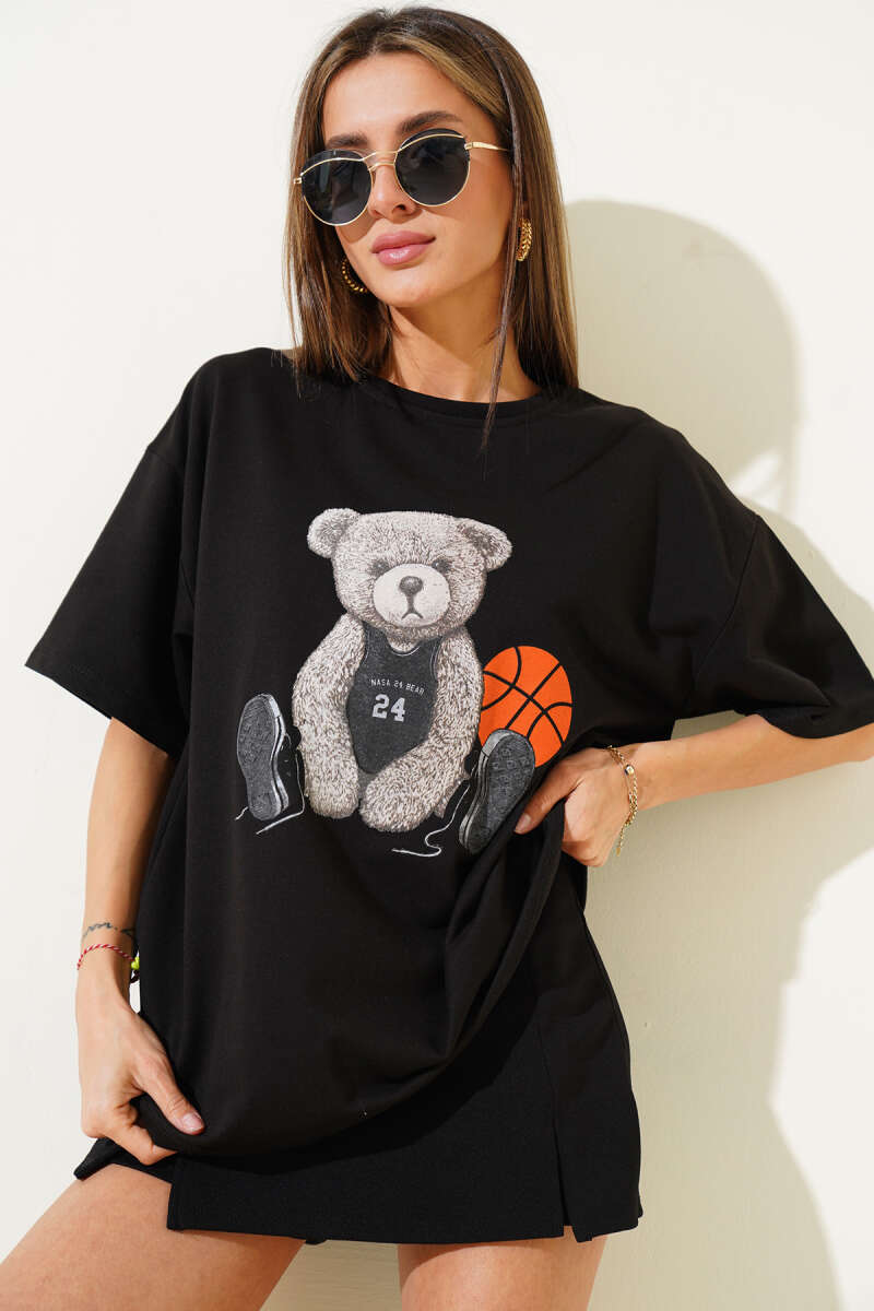 Ayıcıklı Basket Top Baskılı T-shirt Siyah
