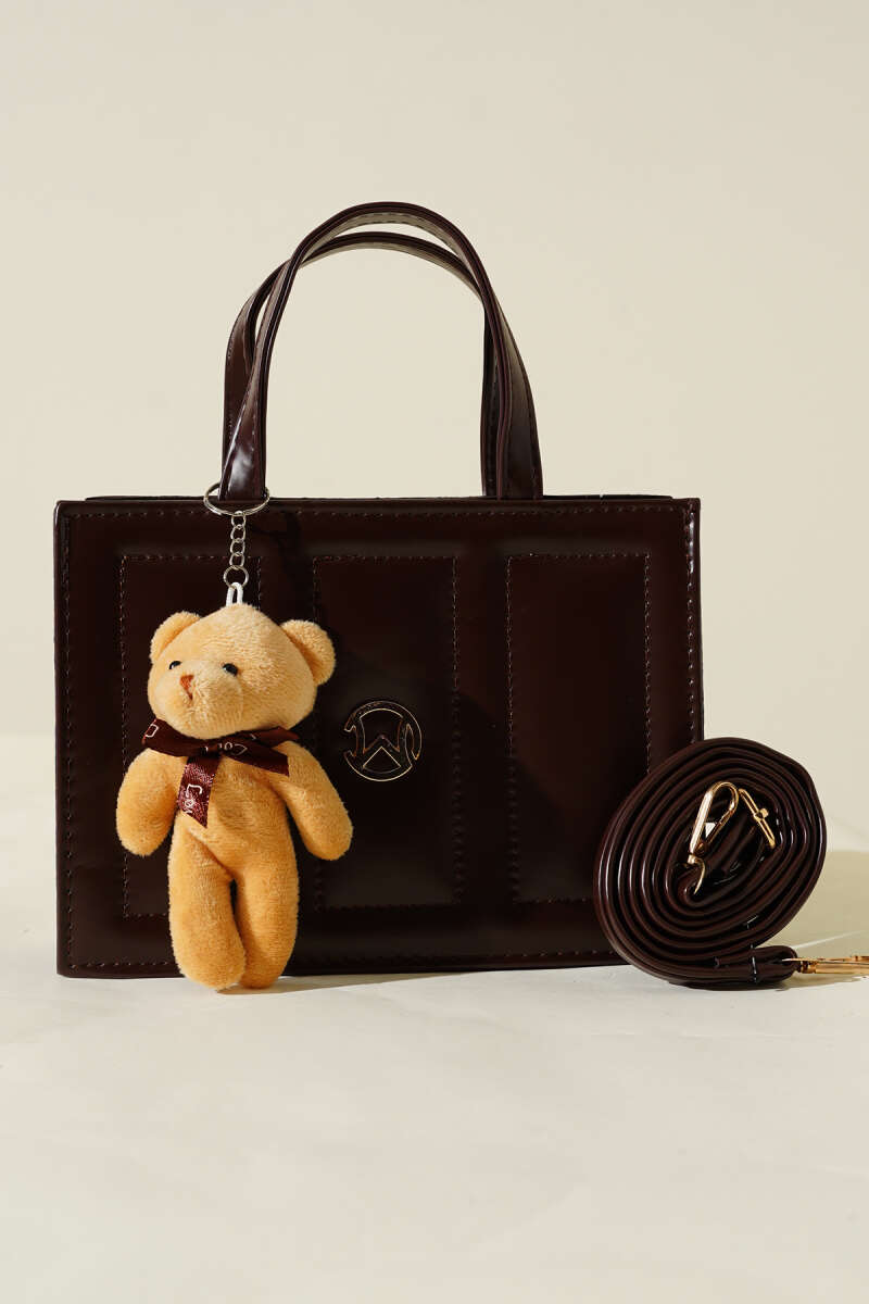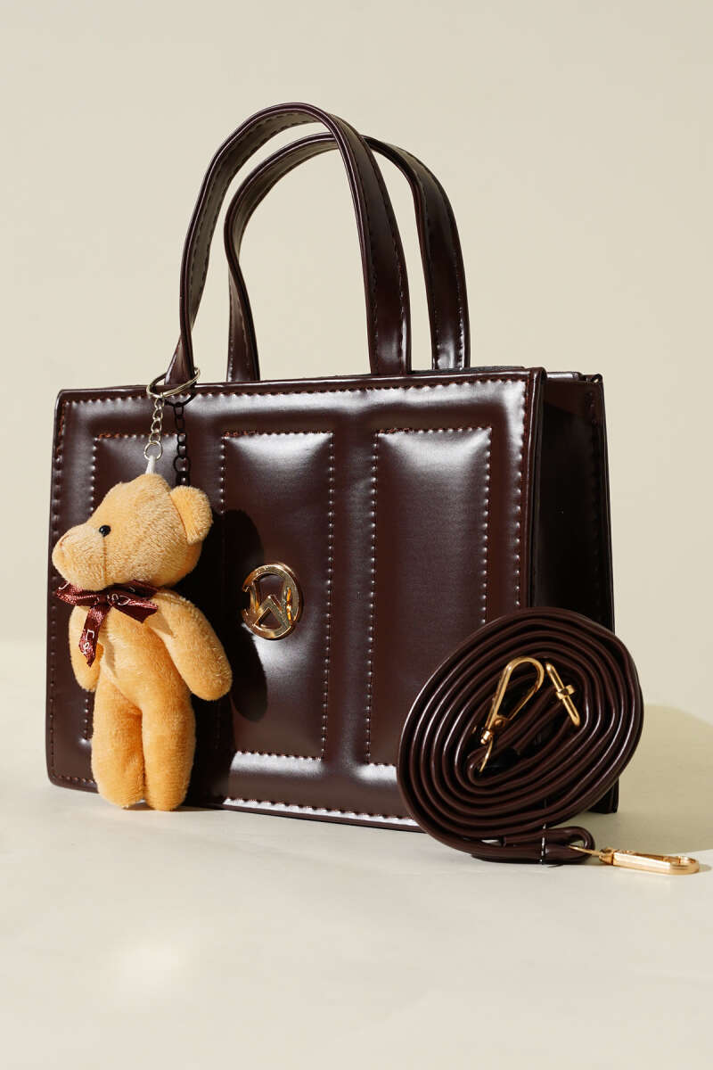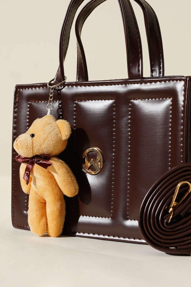 Ayıcıklı Dikişli Kare Çanta Acı Kahve
