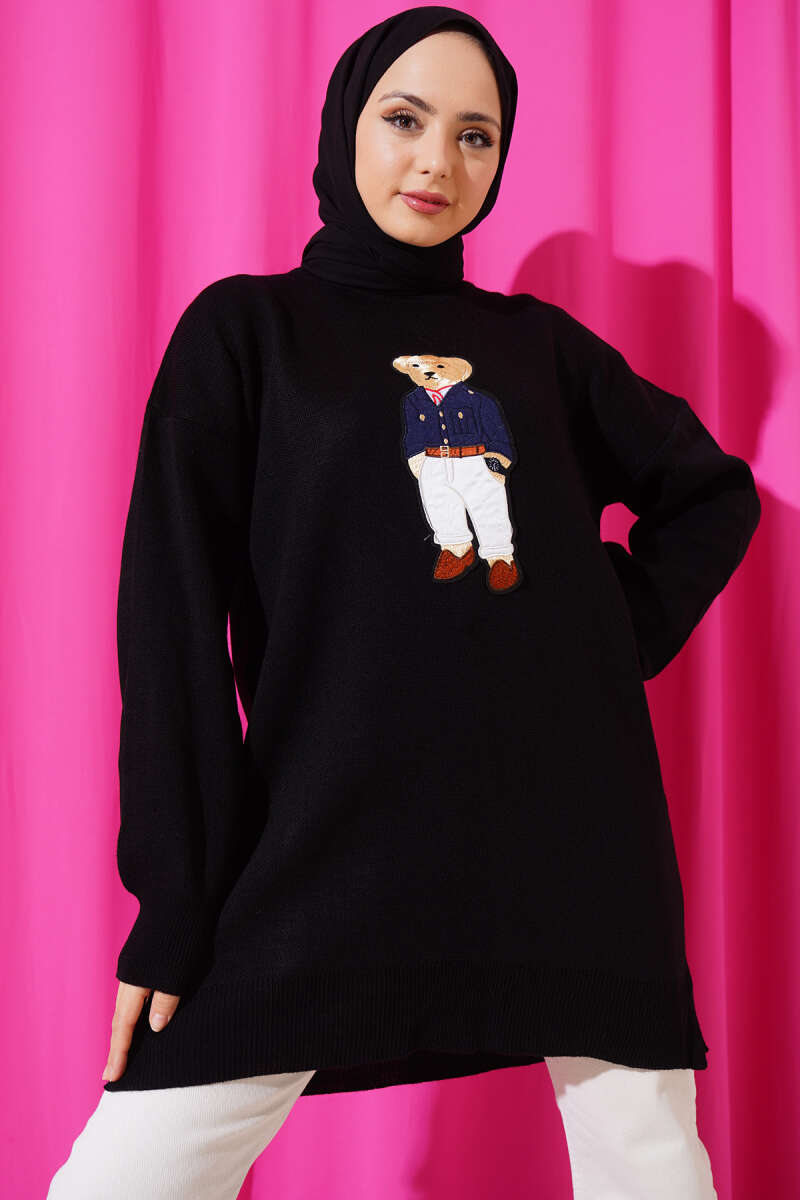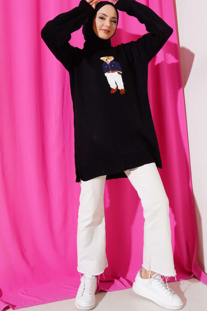 Ayıcıklı Triko Tunik Siyah