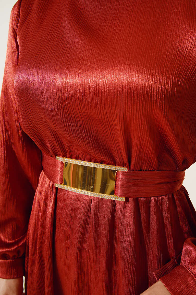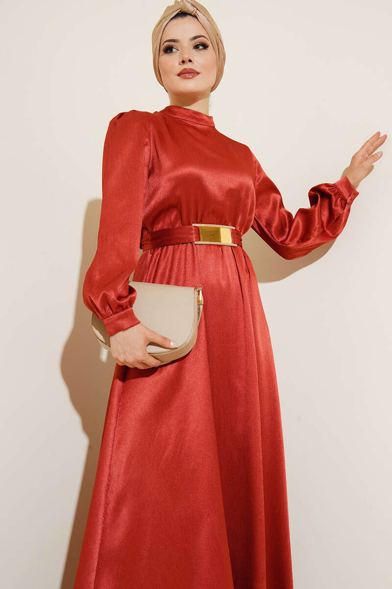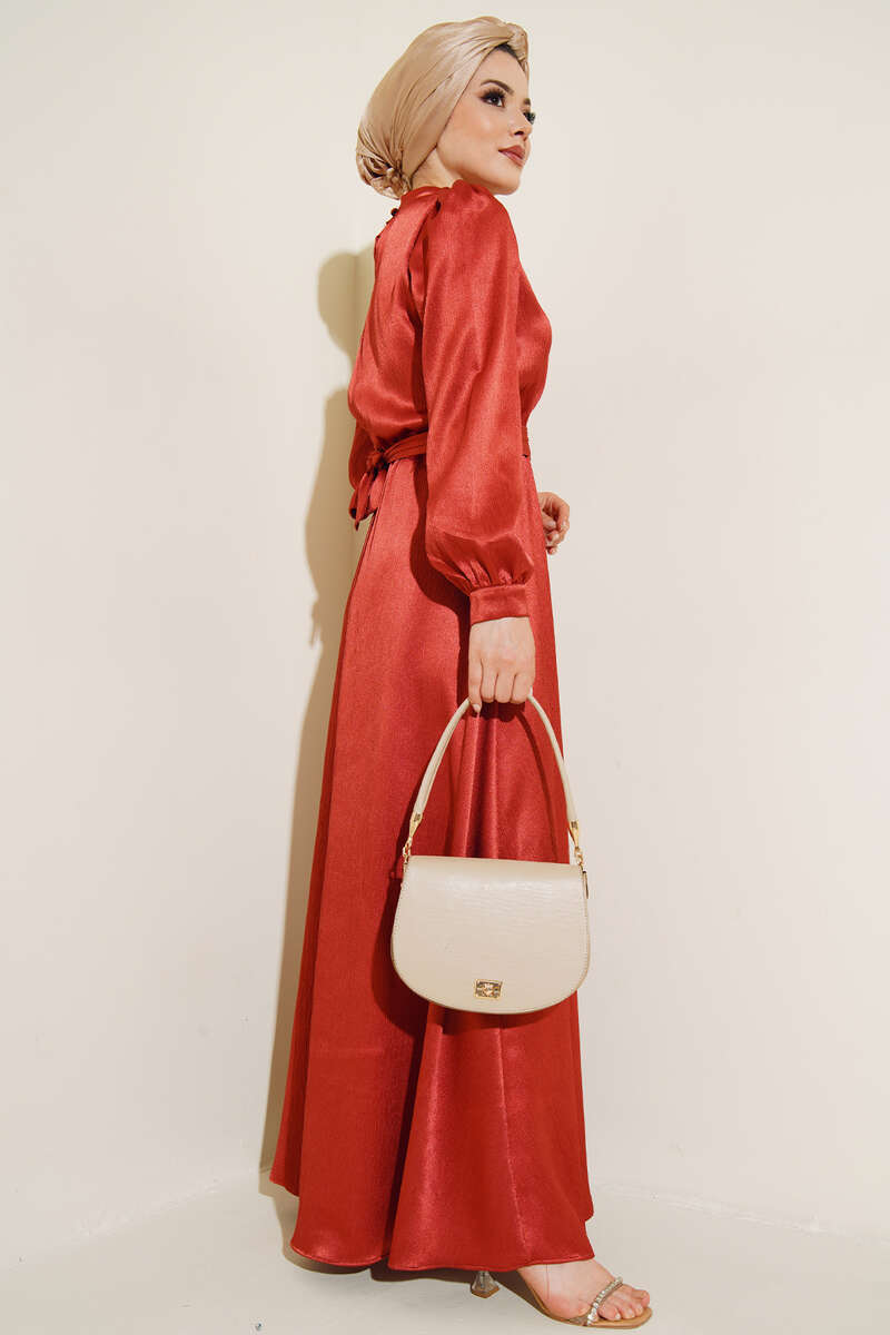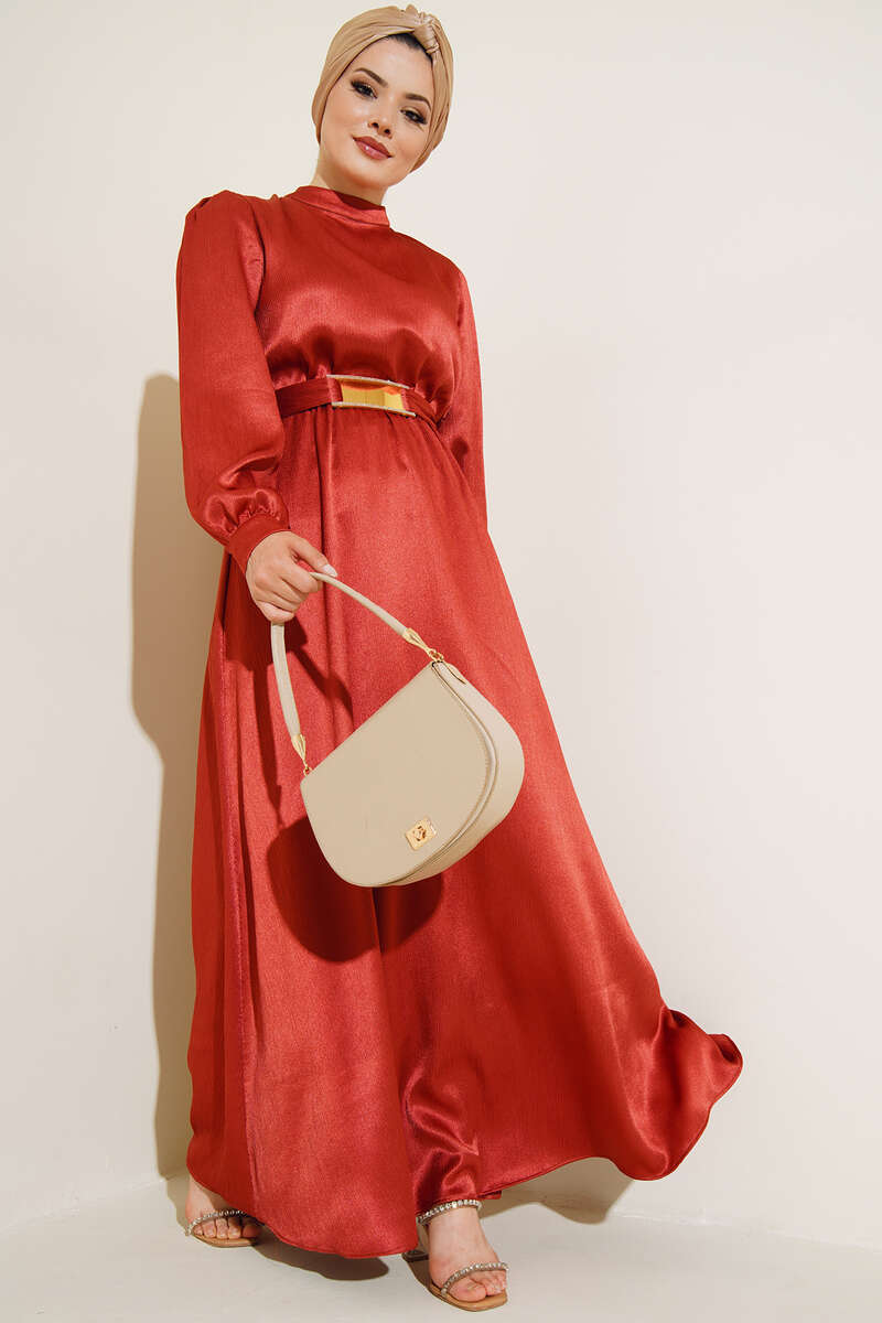 Yeni sezon saten elbisemiz sade ve şıklığıyla harika bir görünüm sunmaktadır. Elbisemizin bilekleri düğmelidir. Ensesinde düğme bulunmaktadır. İki adet kemer köprüsü ve aynalı kemeri bulunmaktadır. Her ortamda rahatlıkla giyebilirsiniz. Farklı renk seçenekleri mevcuttur.