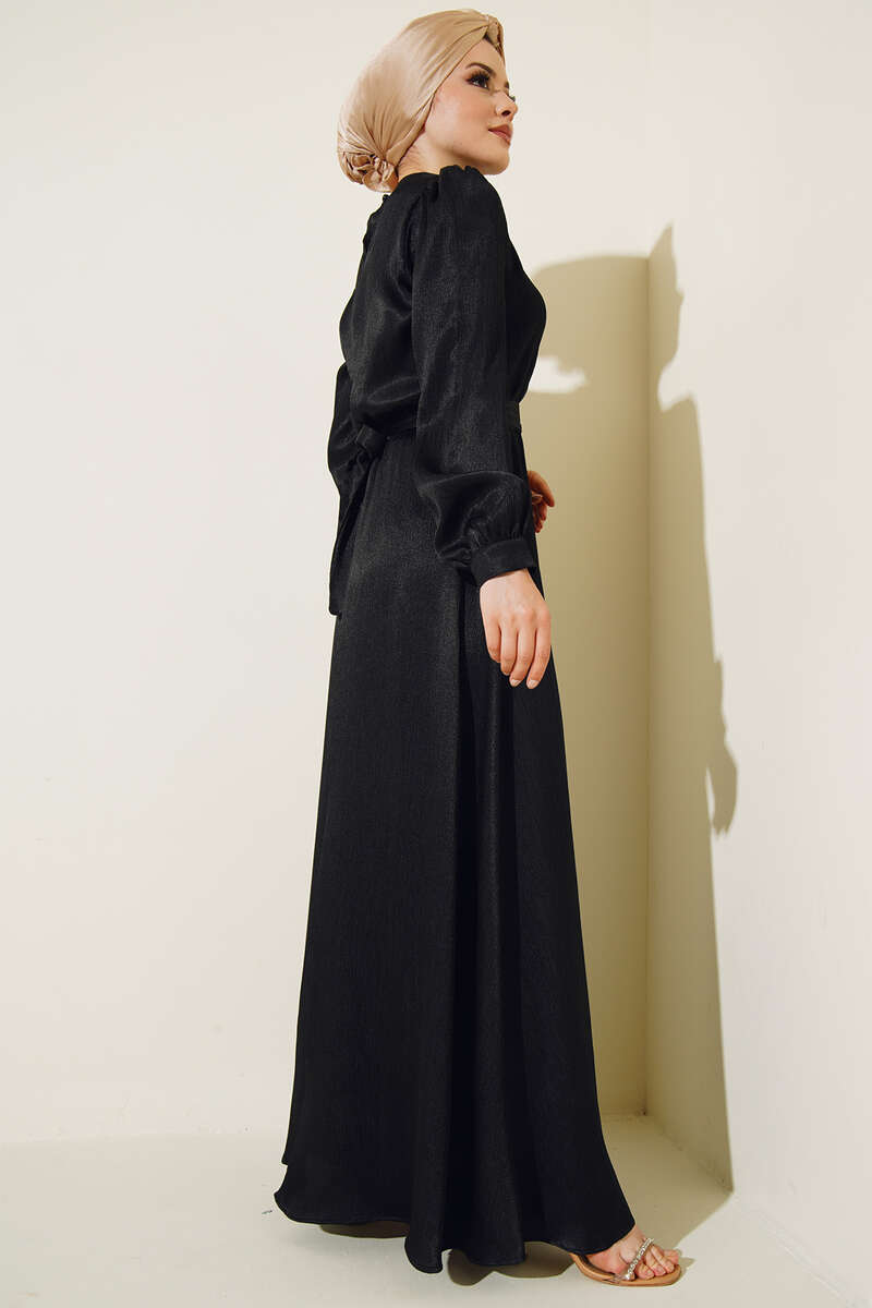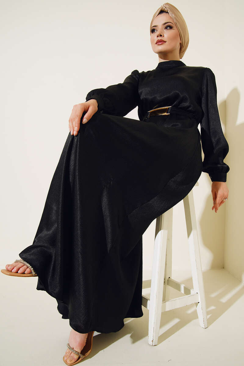 Yeni sezon saten elbisemiz sade ve şıklığıyla harika bir görünüm sunmaktadır. Elbisemizin bilekleri düğmelidir. Ensesinde düğme bulunmaktadır. İki adet kemer köprüsü ve aynalı kemeri bulunmaktadır. Her ortamda rahatlıkla giyebilirsiniz. Farklı renk seçenekleri mevcuttur.