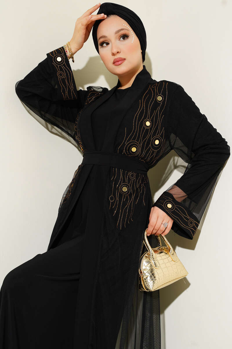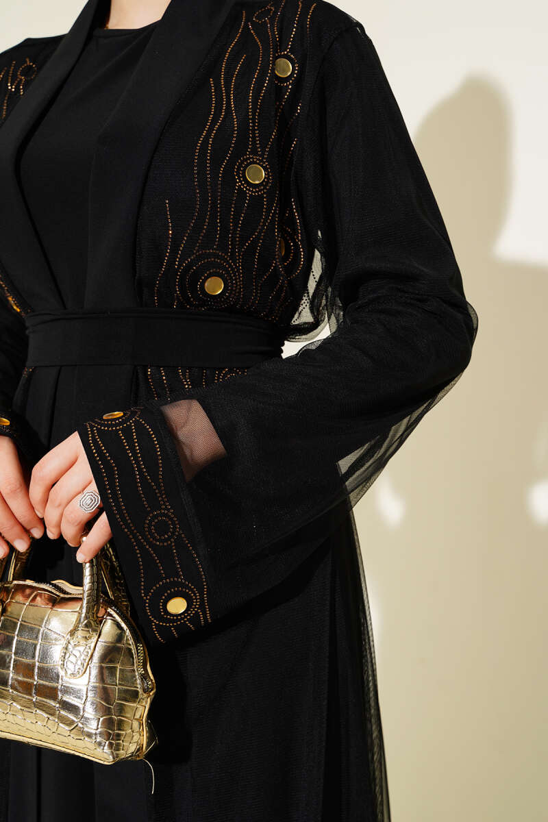 Ayna Taşlı Abaya Siyah