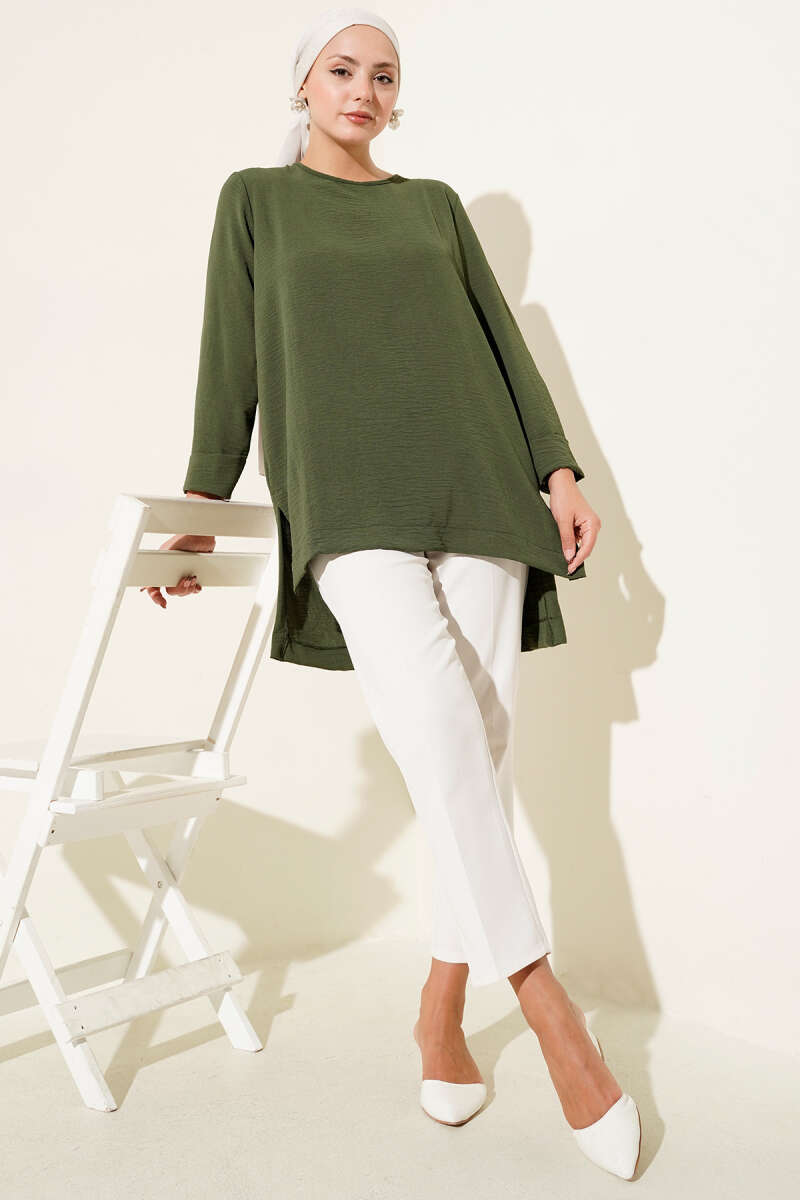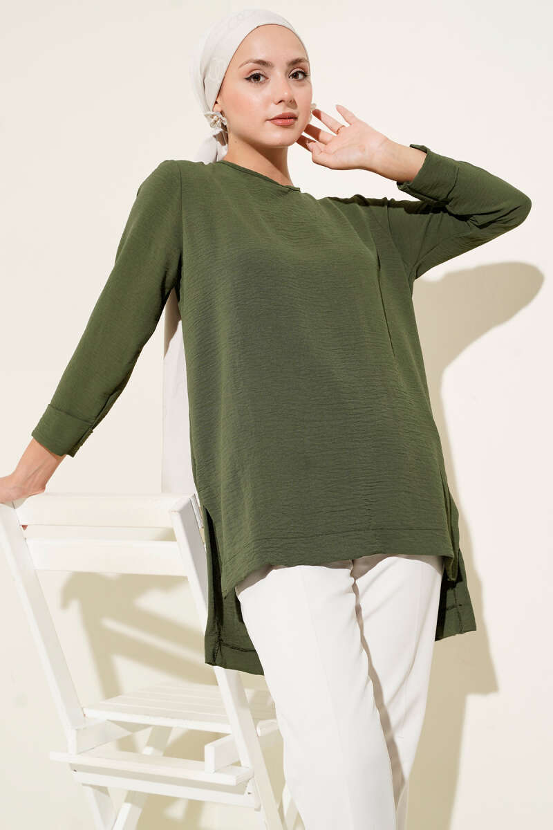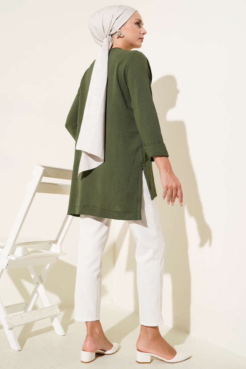 Duble Kol İp Bağcıklı Tunik Zümrüt
