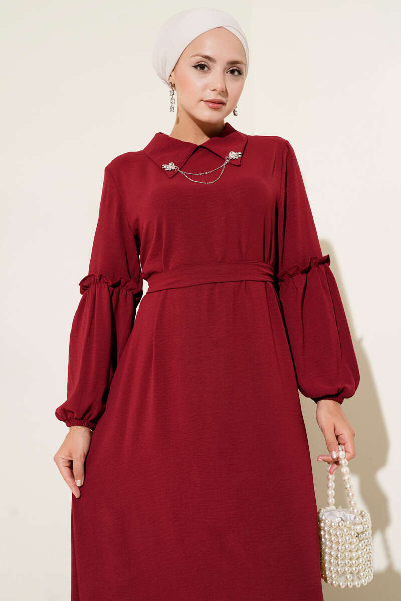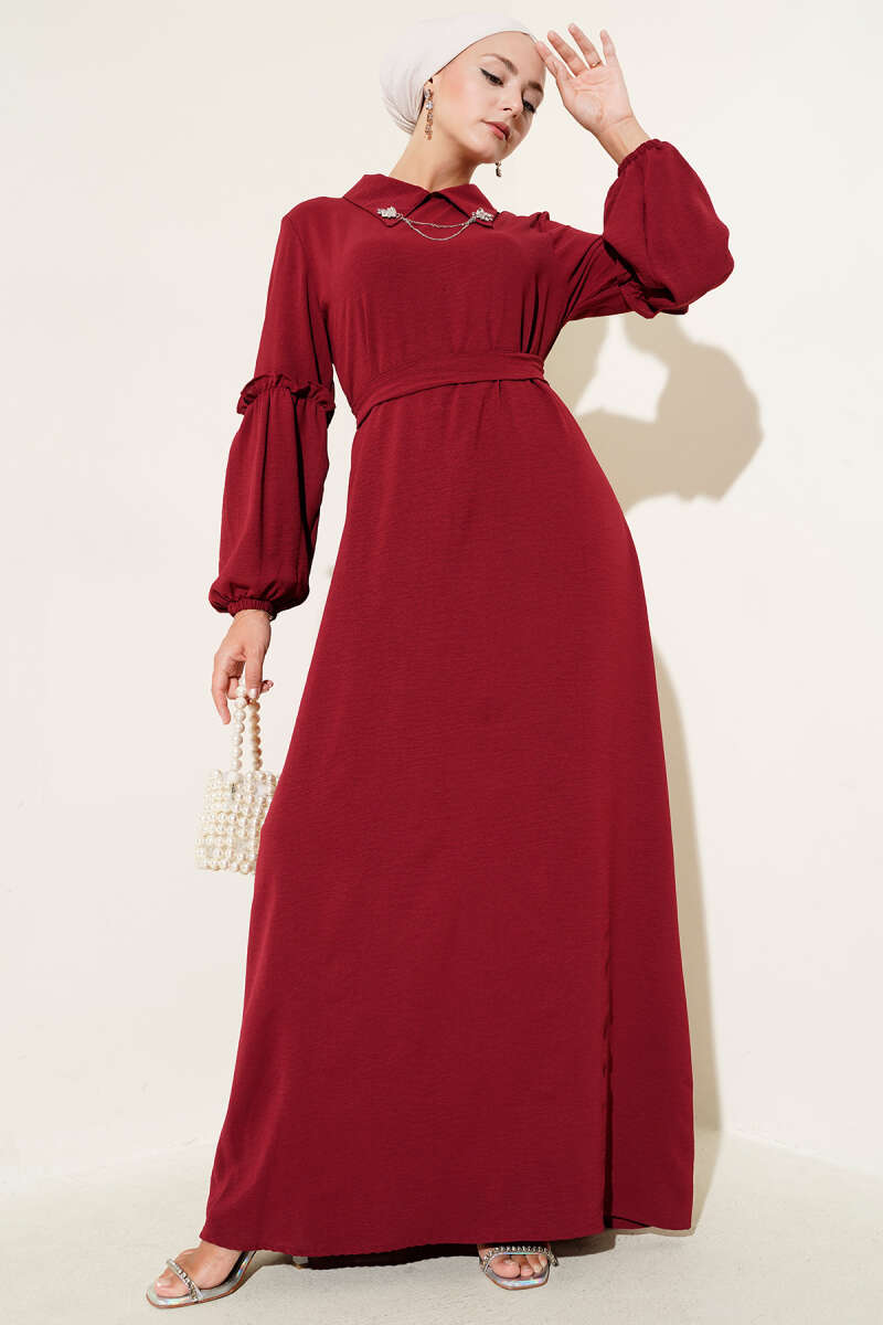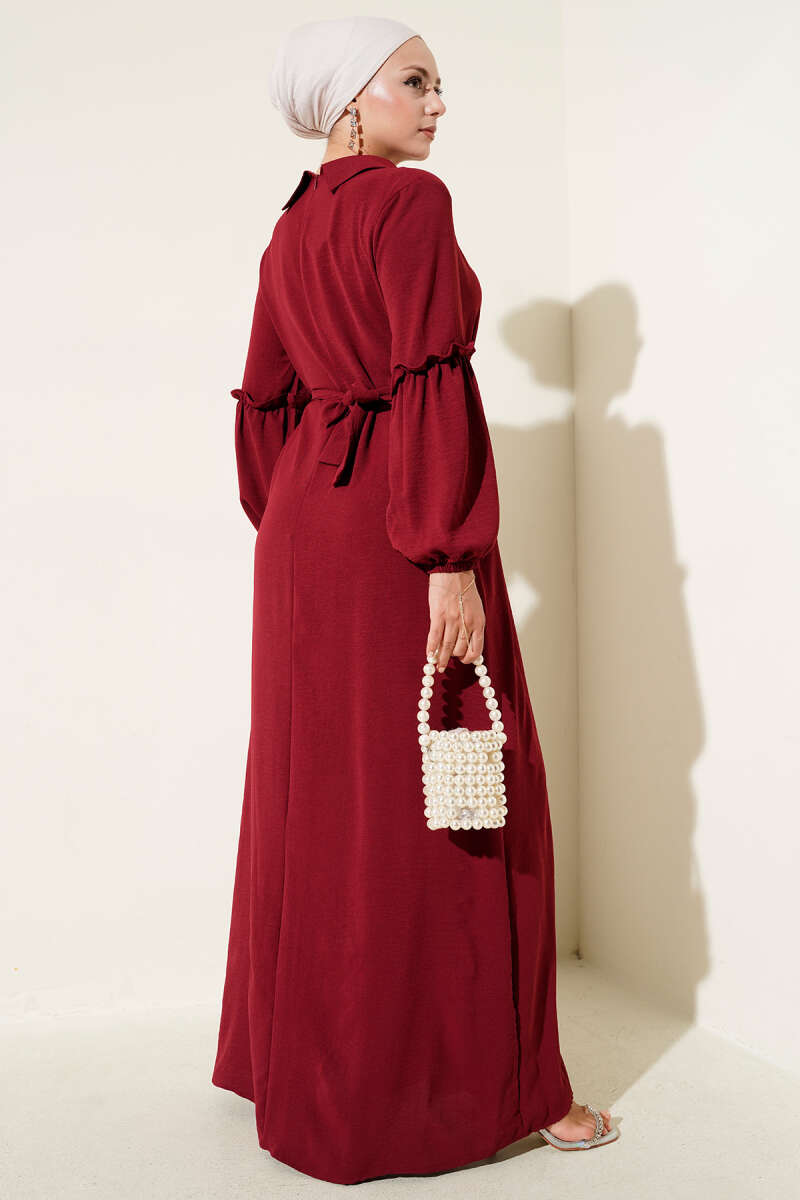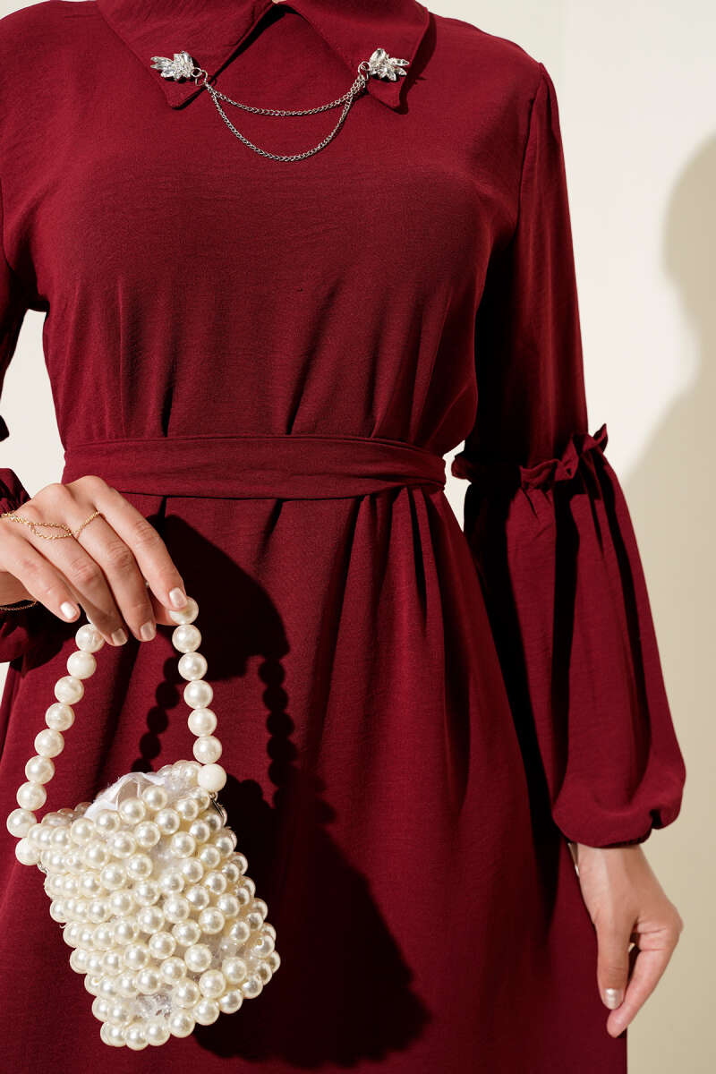 Gömlek Yaka Düğmeli Triko Elbise Bordo