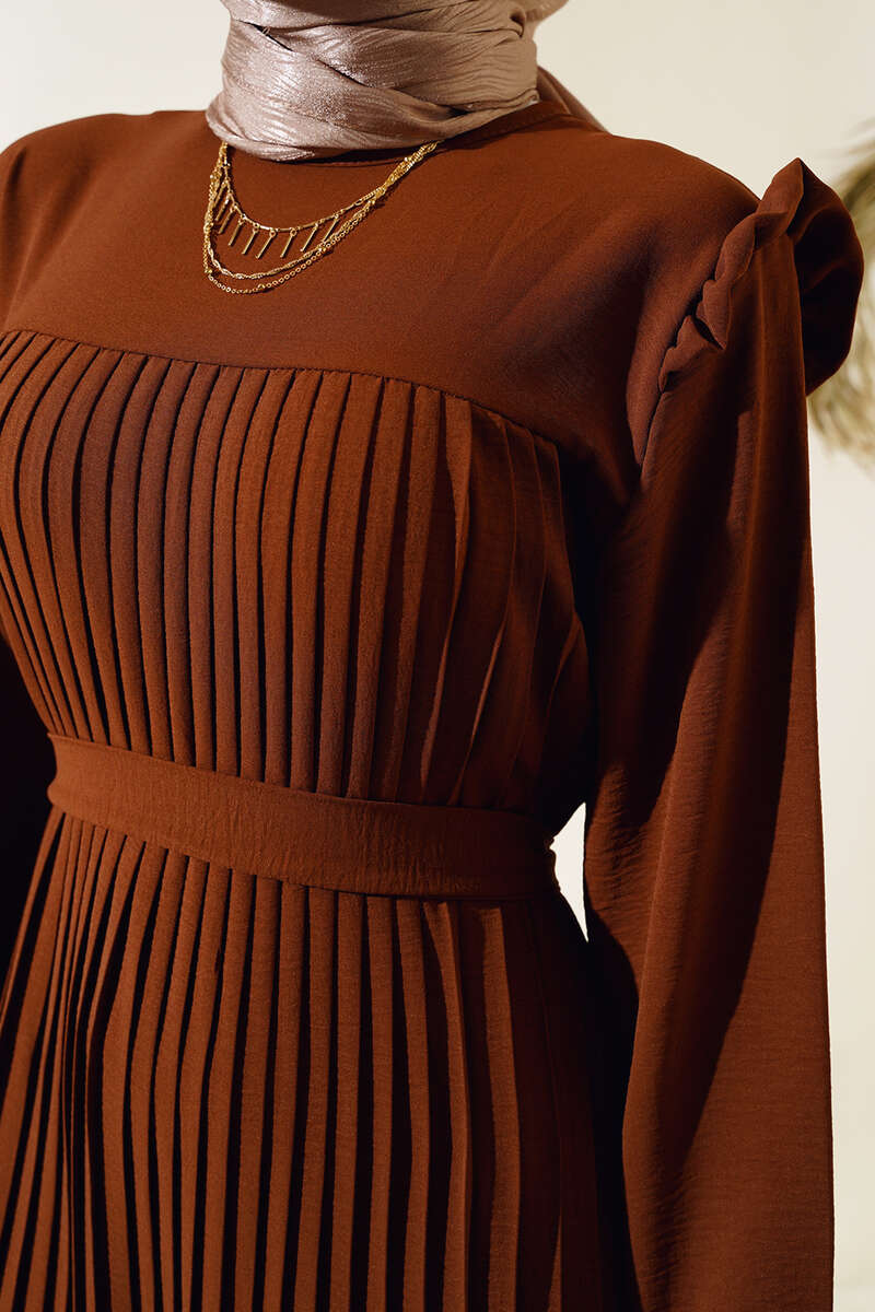 Omuz Pelerin Detaylı Abiye Elbise Kahve