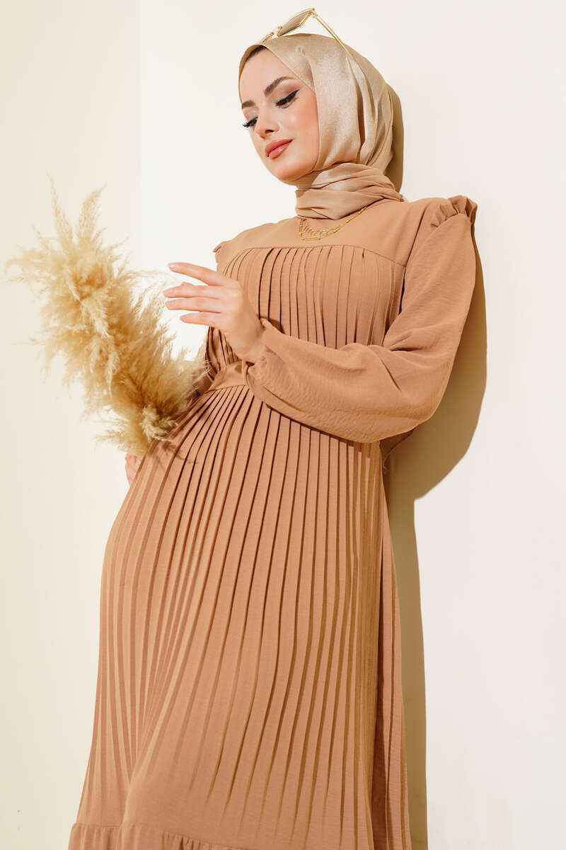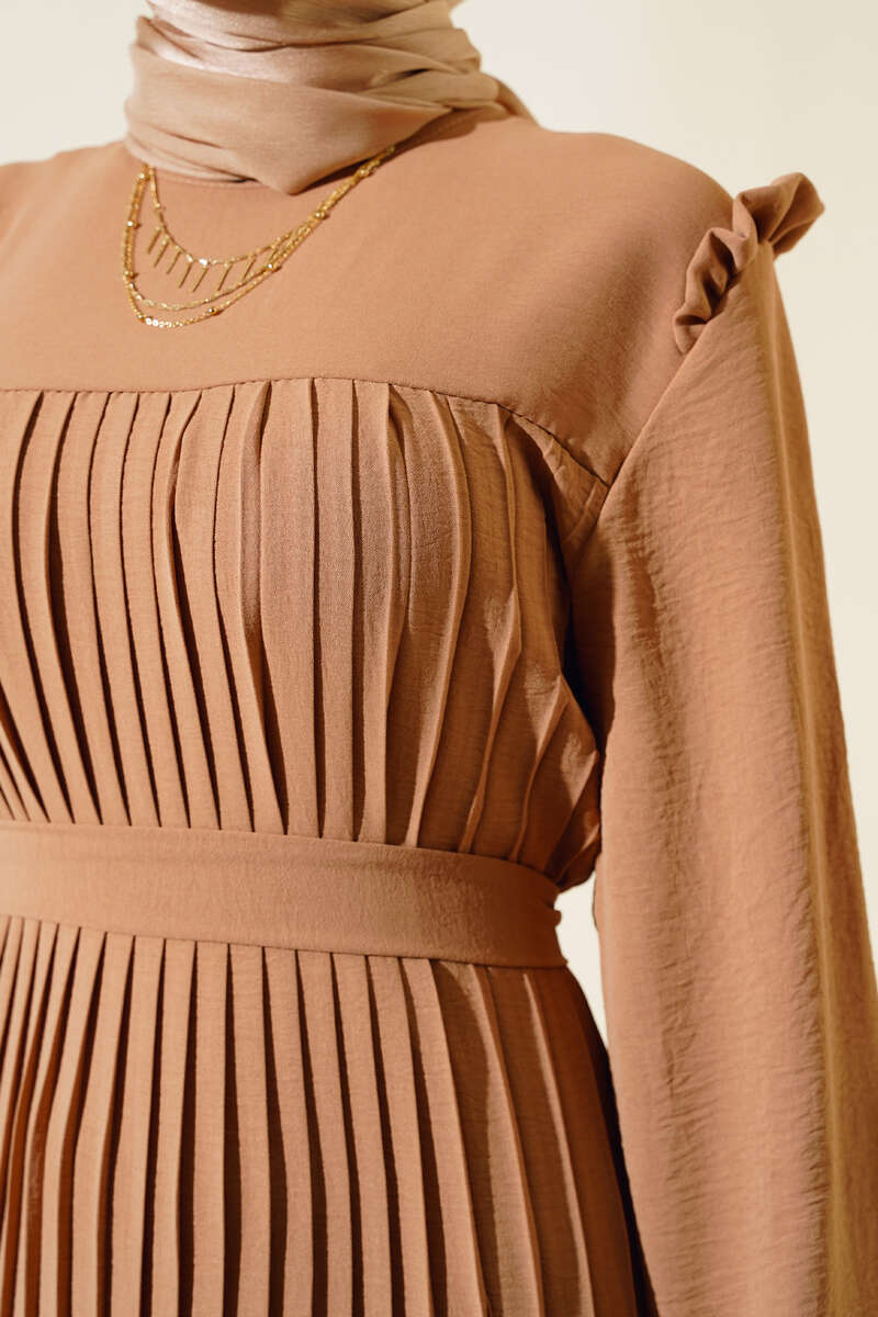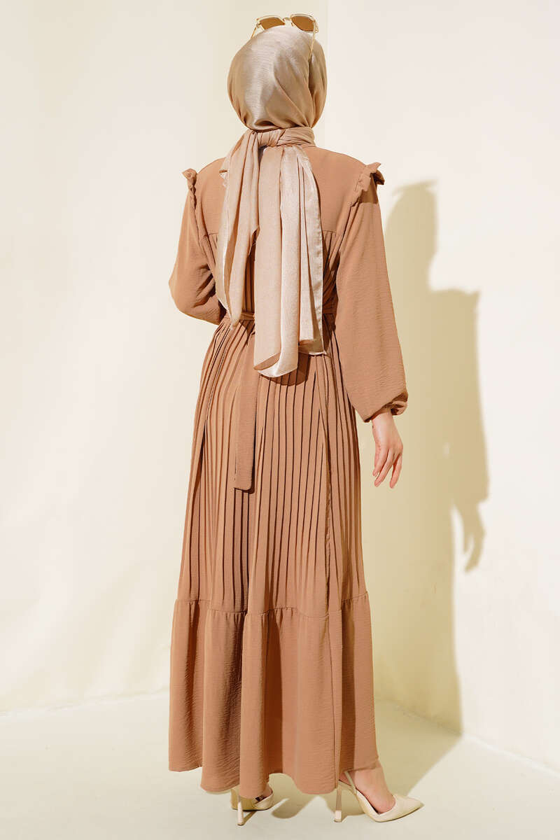 Ayrobin Piliseli Elbise Latte