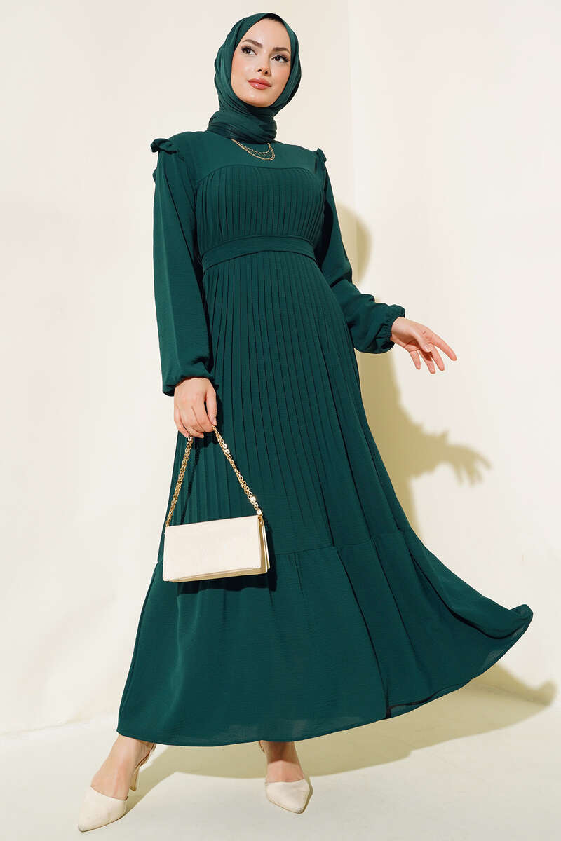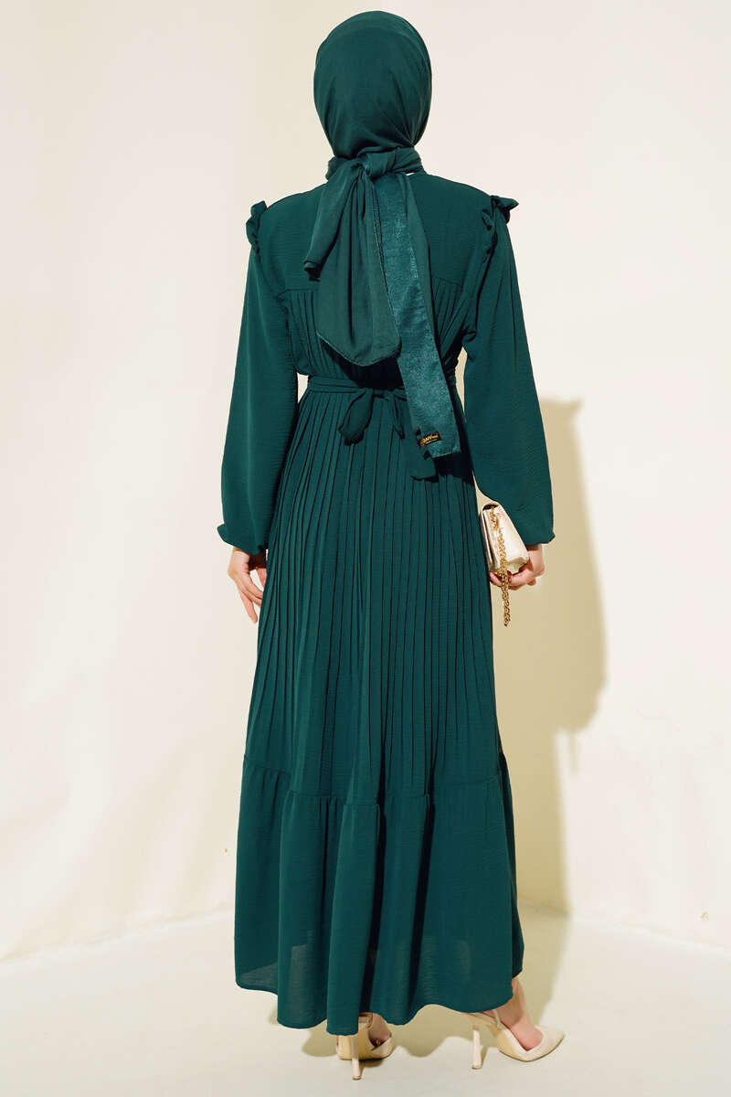 Yeni sezon elbise modelimiz sizlerle beraber. Elbisemiz belden kuşak bağlamalıdır. Omuzları fırfırlıdır. Etek ucu kat modeldir. Kol bilekleri lastiklidir. Enseden düğmelidir. Piliseli elbisemiz hareketlilik kazanmıştır. Piliseli elbise modelimizin renk seçenekleri mevcuttur.