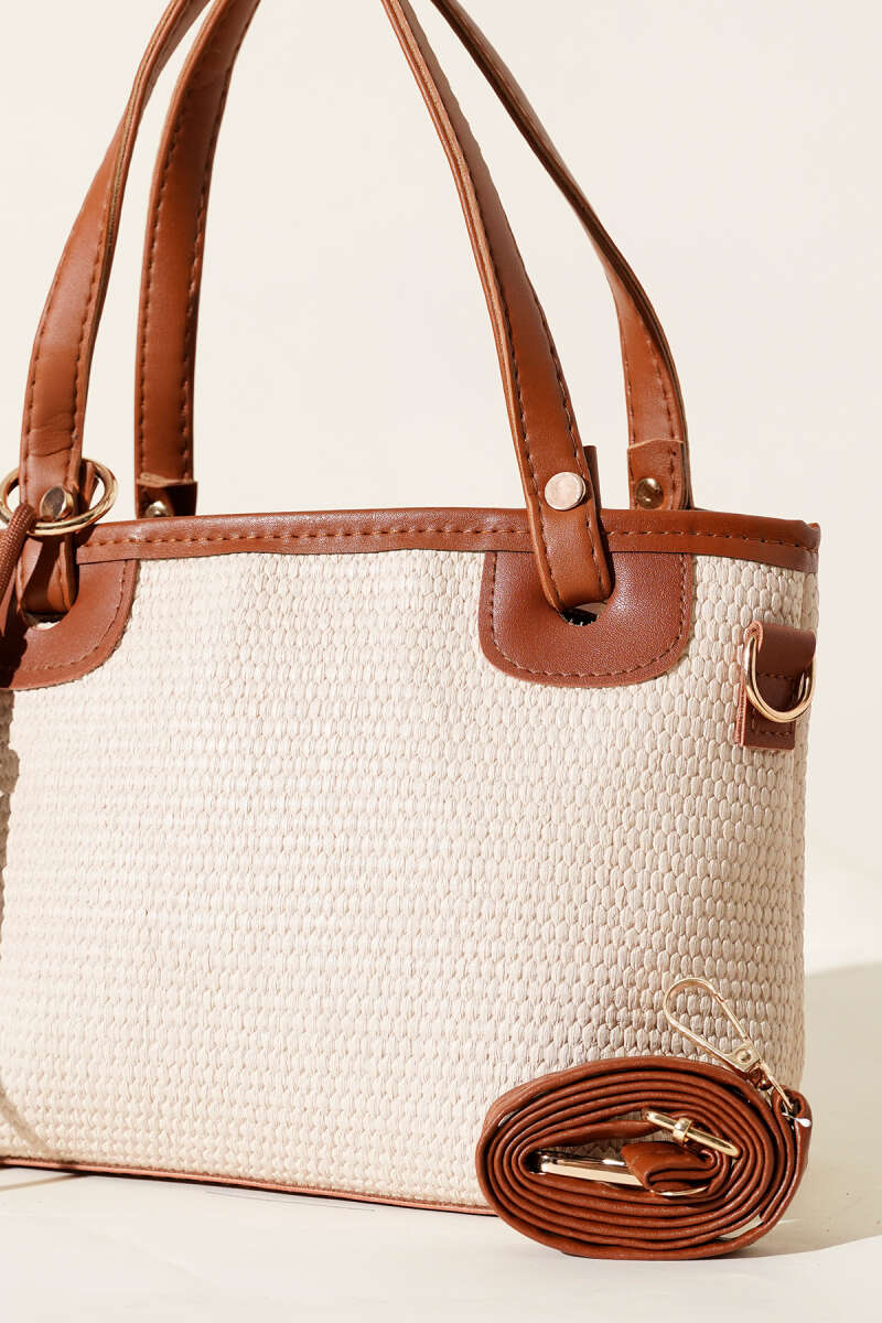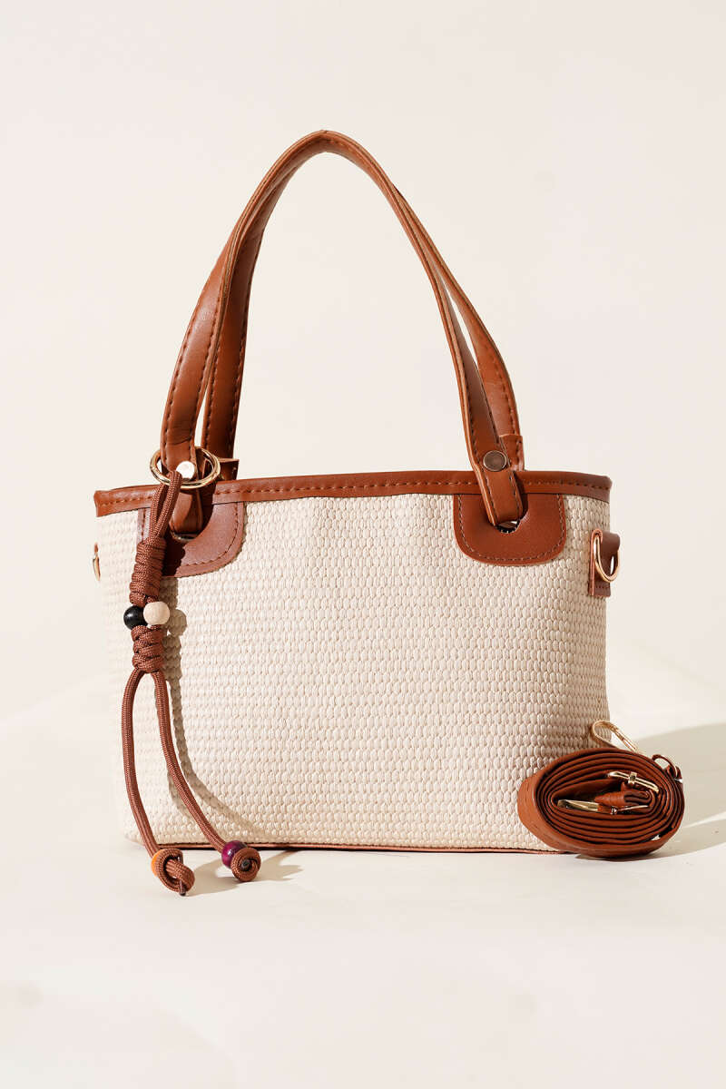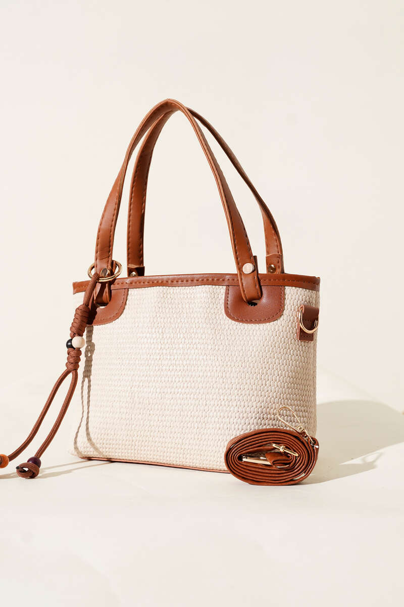 Bağcık Süs Detaylı Hasır Çanta Taba