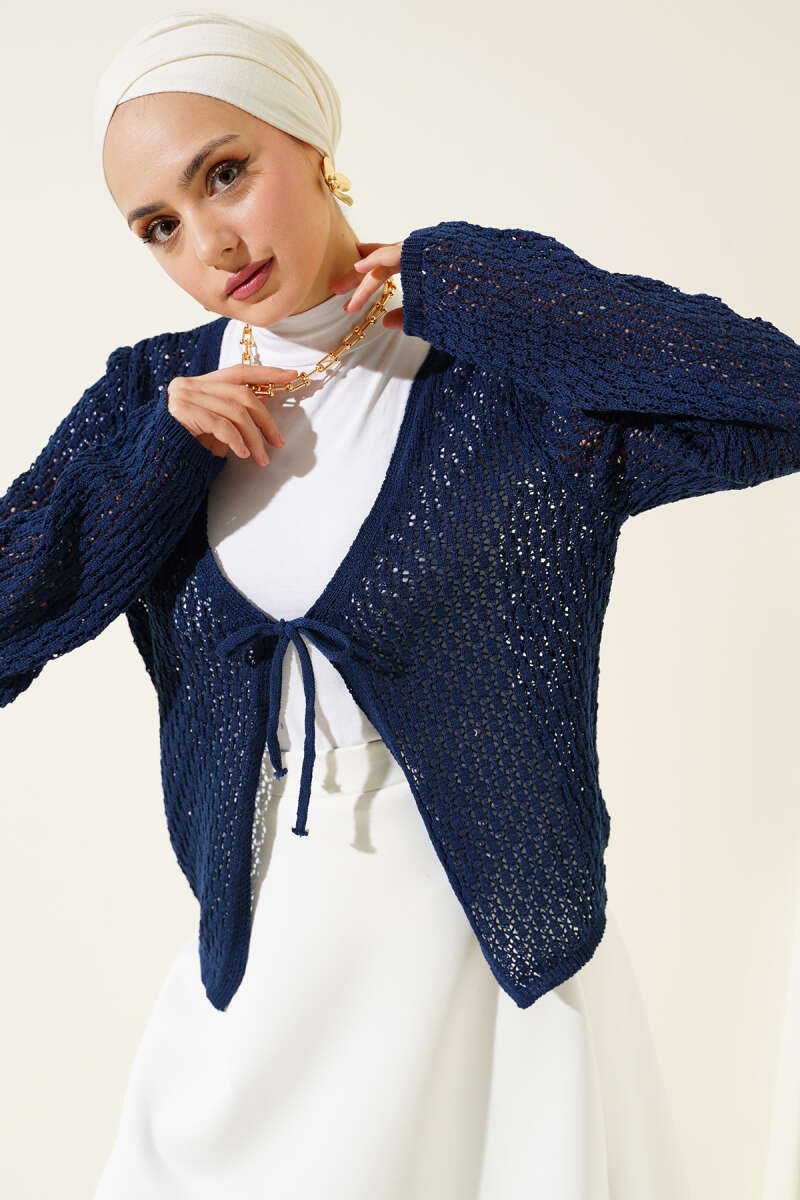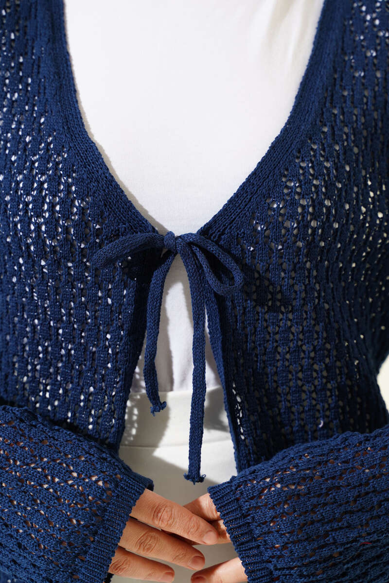 Yaka Dantelli Kısa Triko Hırka Lacivert