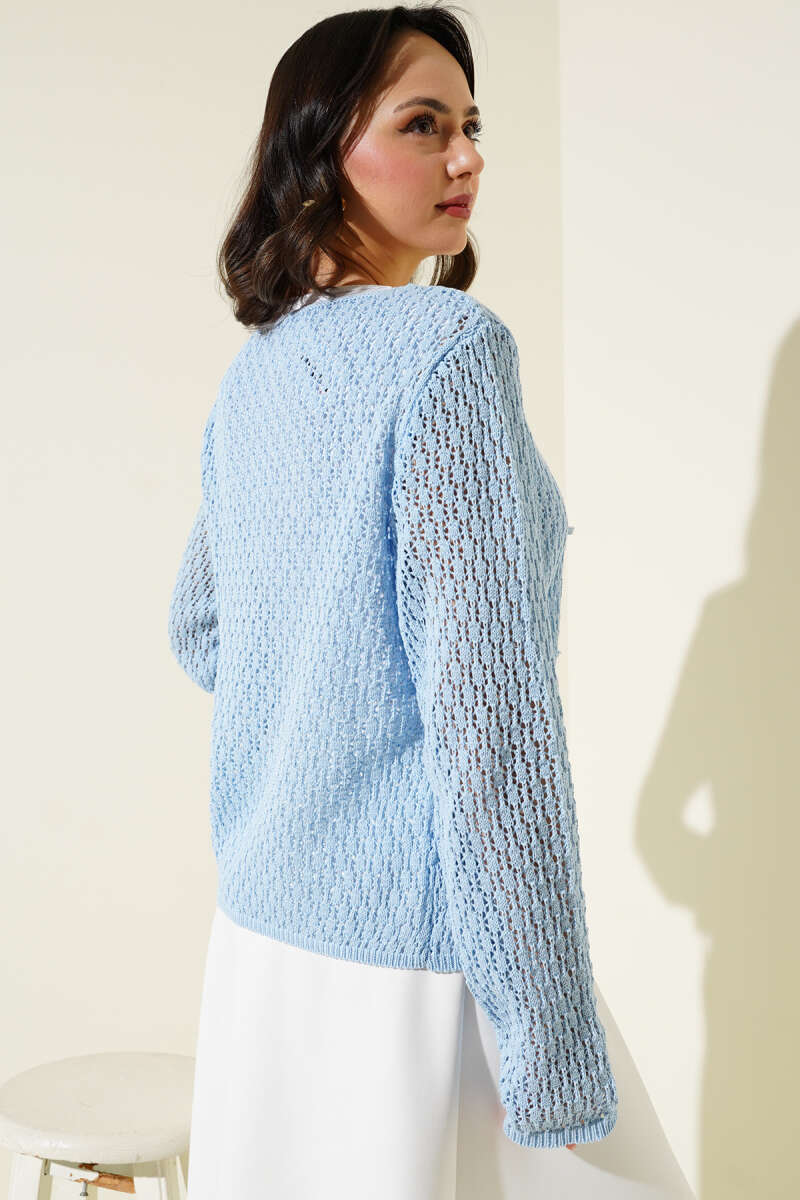 Pirinç Örgü Basic Triko Hırka Mavi