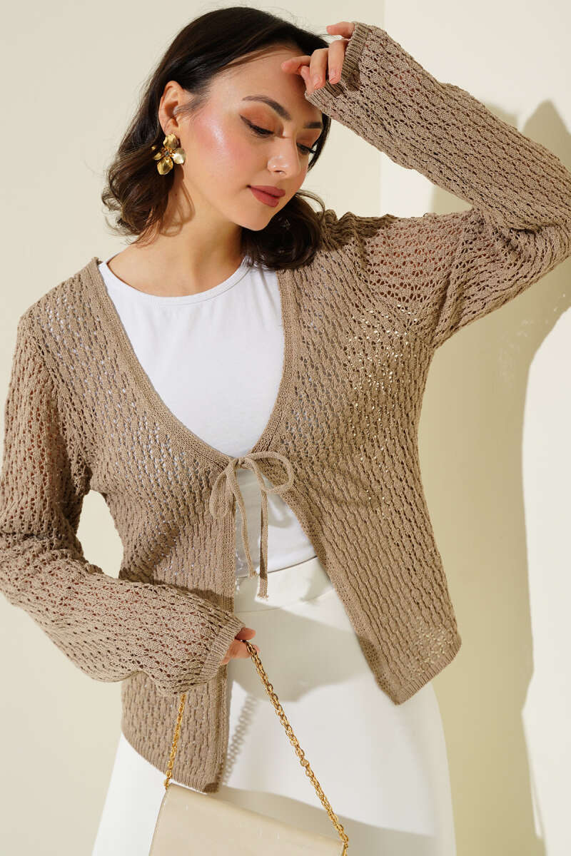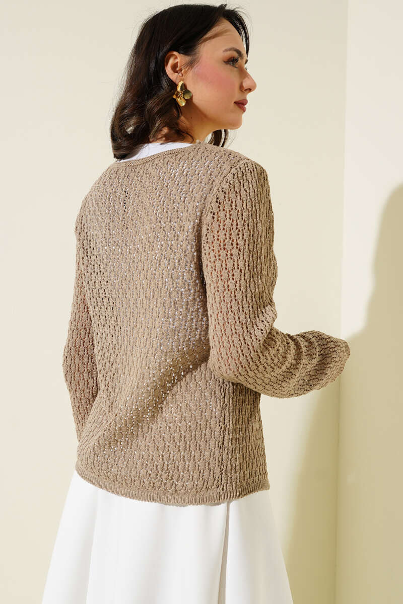 Pirinç Örgü Basic Triko Hırka Bej