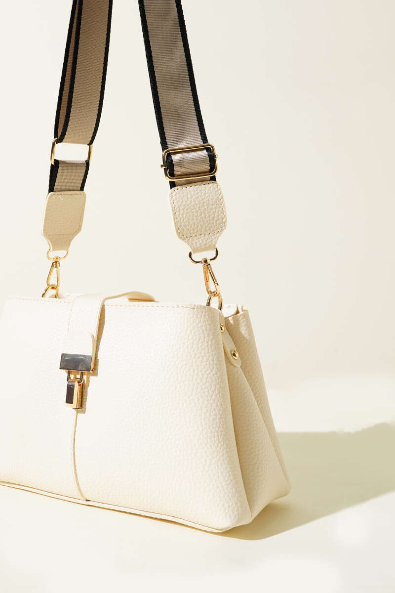 Baget Kilitli Kol Çantası Krem