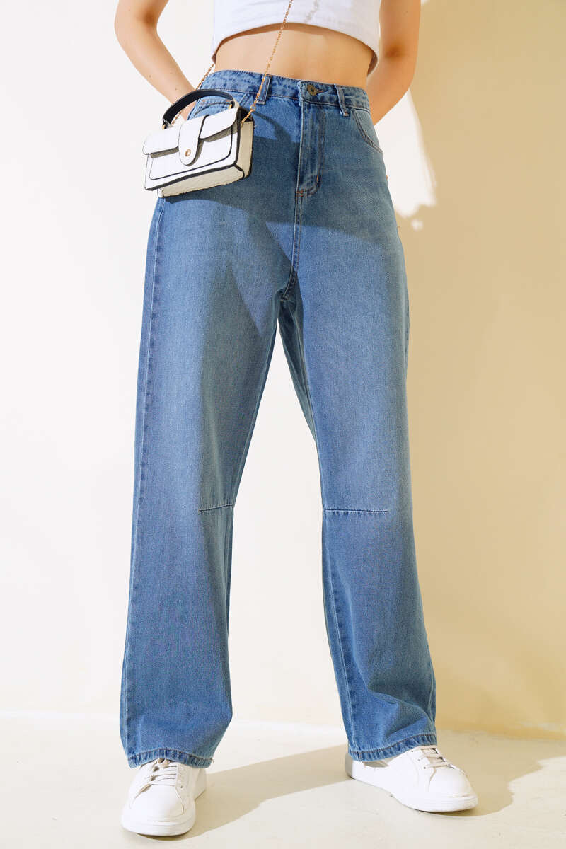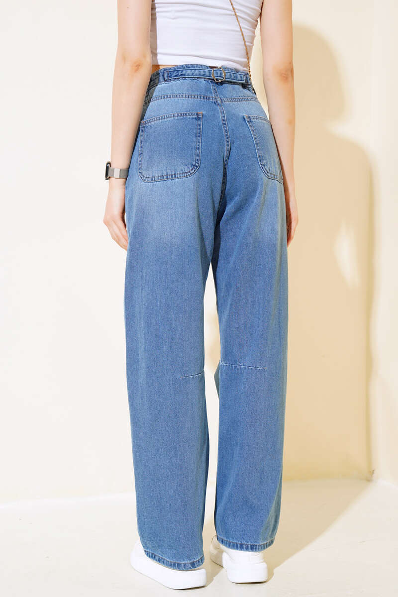 Baggy Arka Tokalı Kot Pantolon Orta Mavi