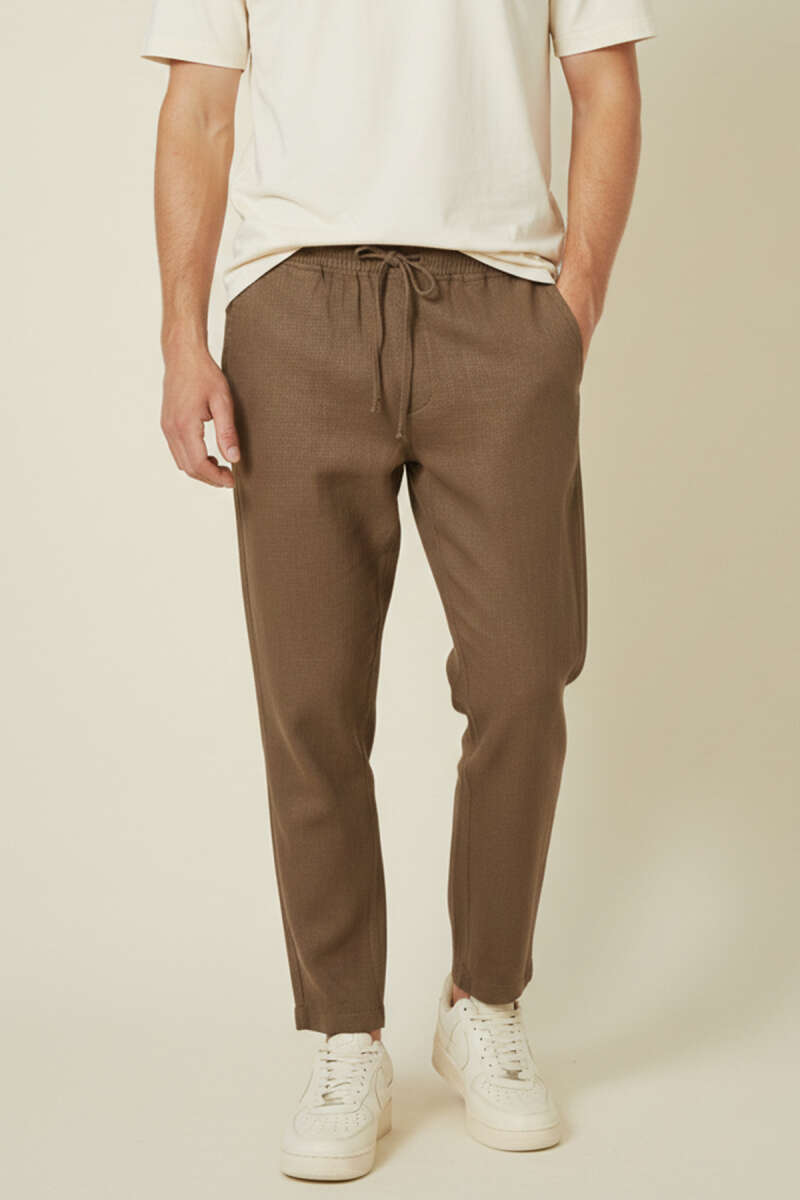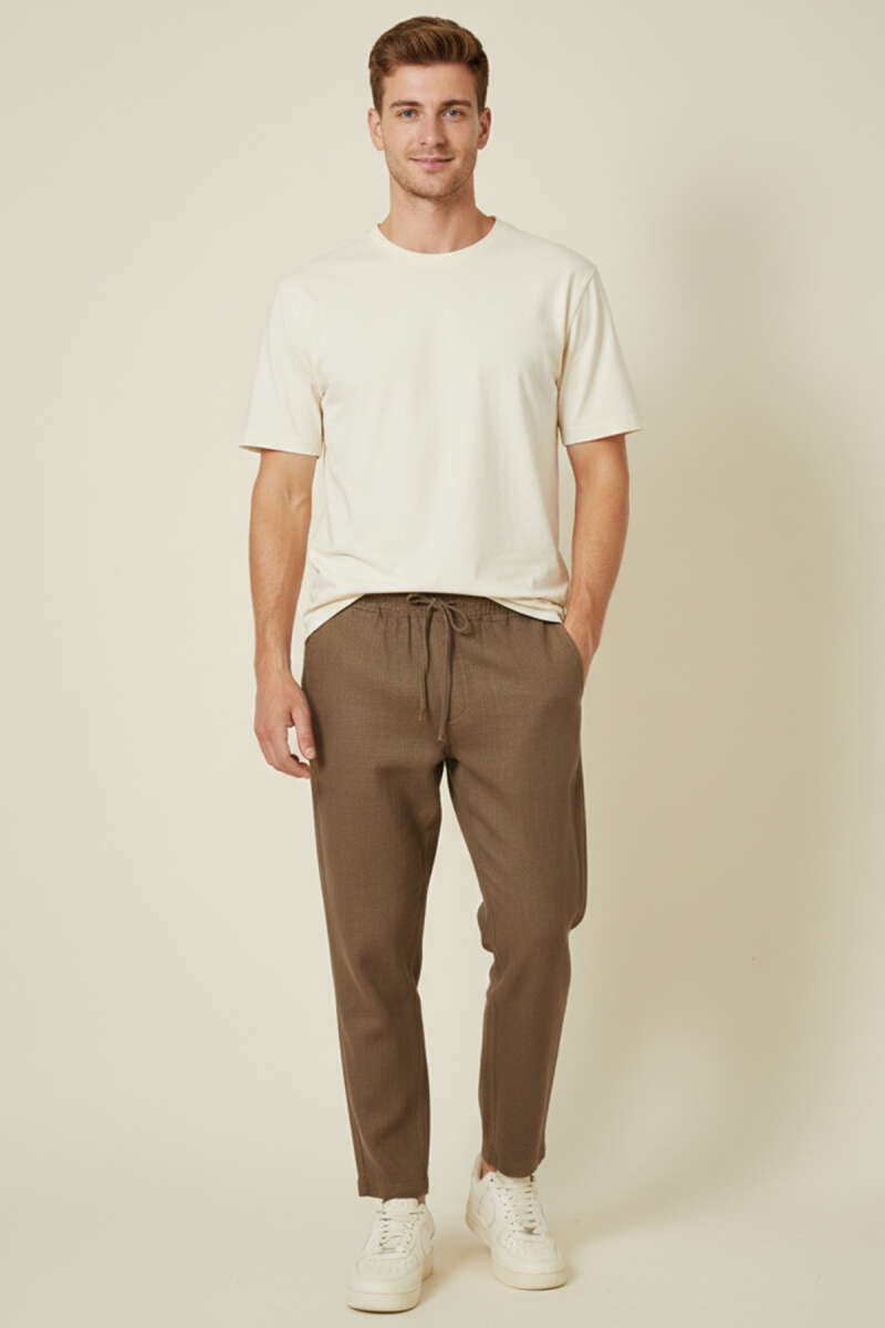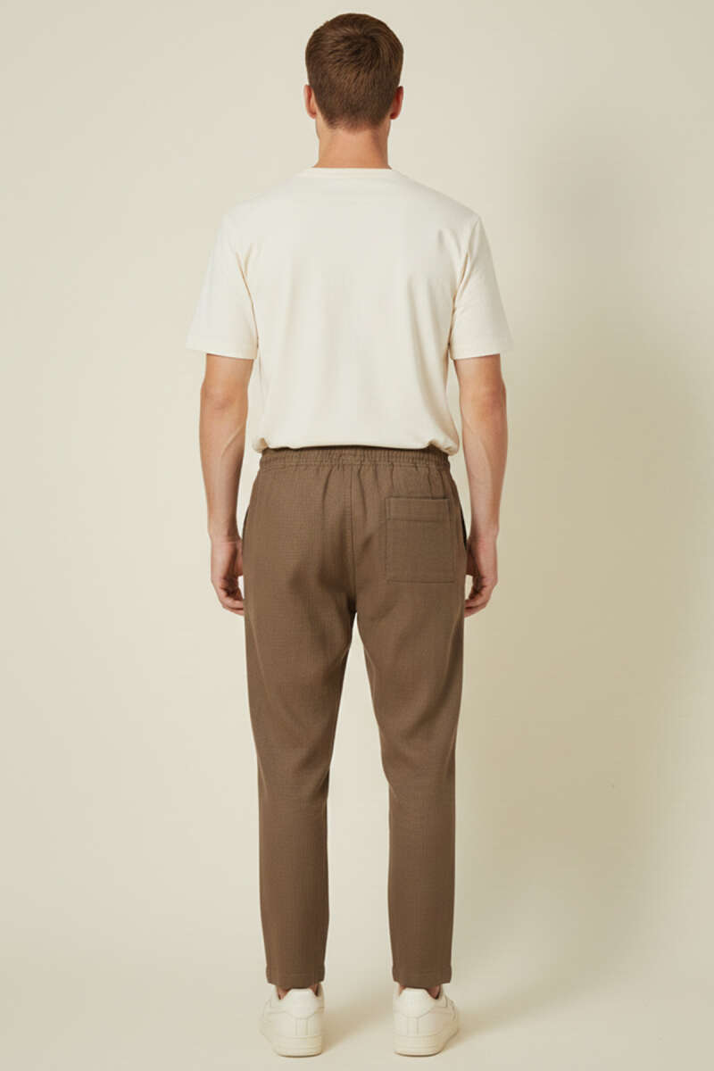 Bel Lastik Detaylı Dar Paça Erkek Pantolon Füme