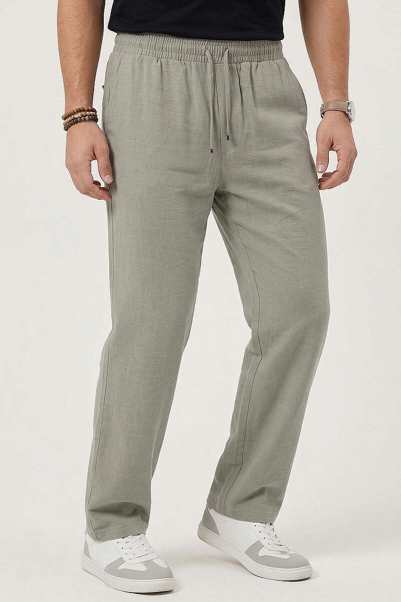 Hasır Kemerli Keten Erkek Pantolon Kahve