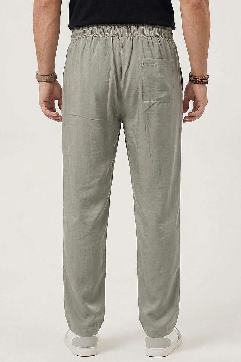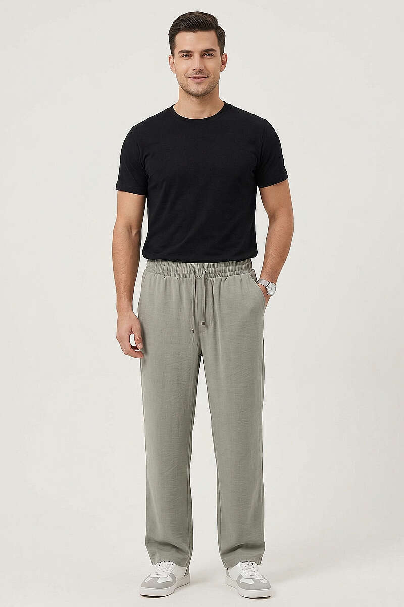 Hasır Kemerli Keten Erkek Pantolon Siyah