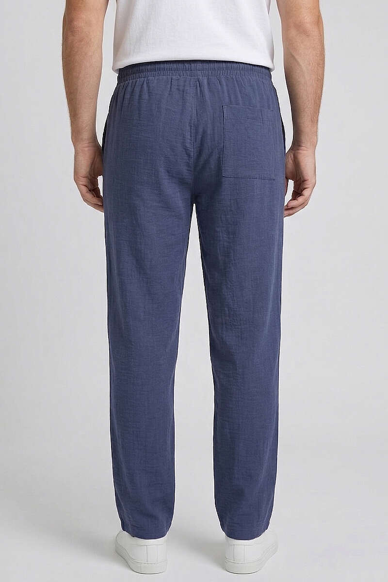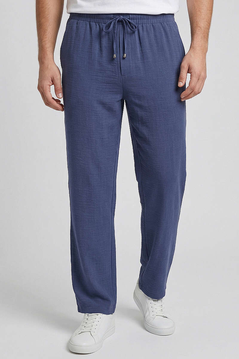 Hasır Kemerli Keten Erkek Pantolon Siyah