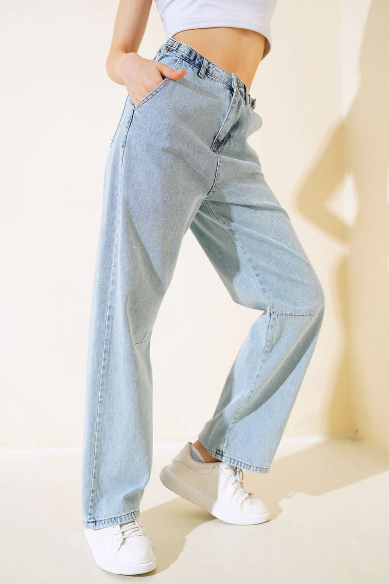 Yeni sezon kot pantolon modelimiz sizlerle beraber. Pantolonumuzun beli düğmeli ve fermuarlıdır. Belinin yanları tokalıdır. Baggy modeldir. Dizi pens detaylıdır. Belinde beş adet kemer köprüsü vardır. Pantolonumuz kombinlerinizin favori parçası olacaktır.