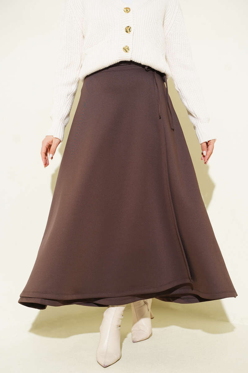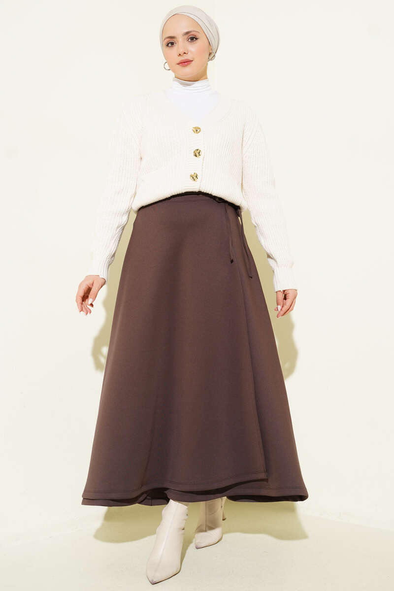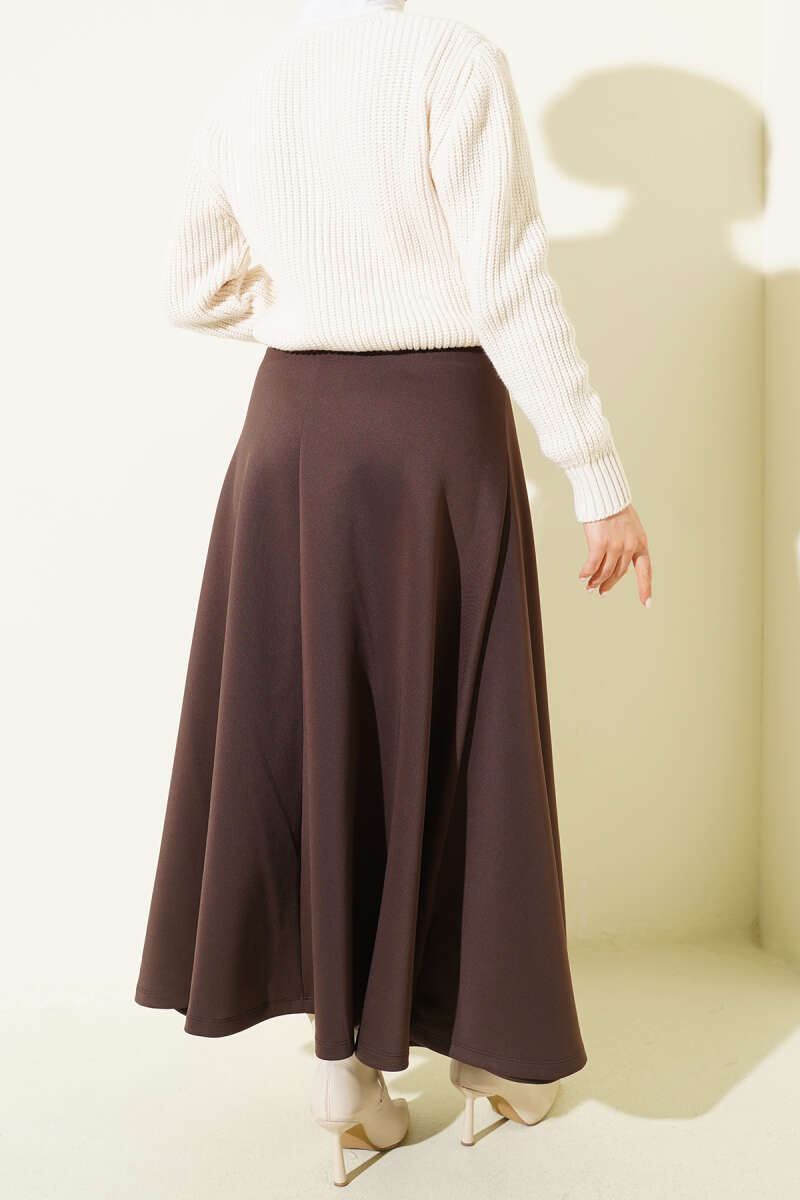 V Dikişli Etekli İkili Takım Kahve