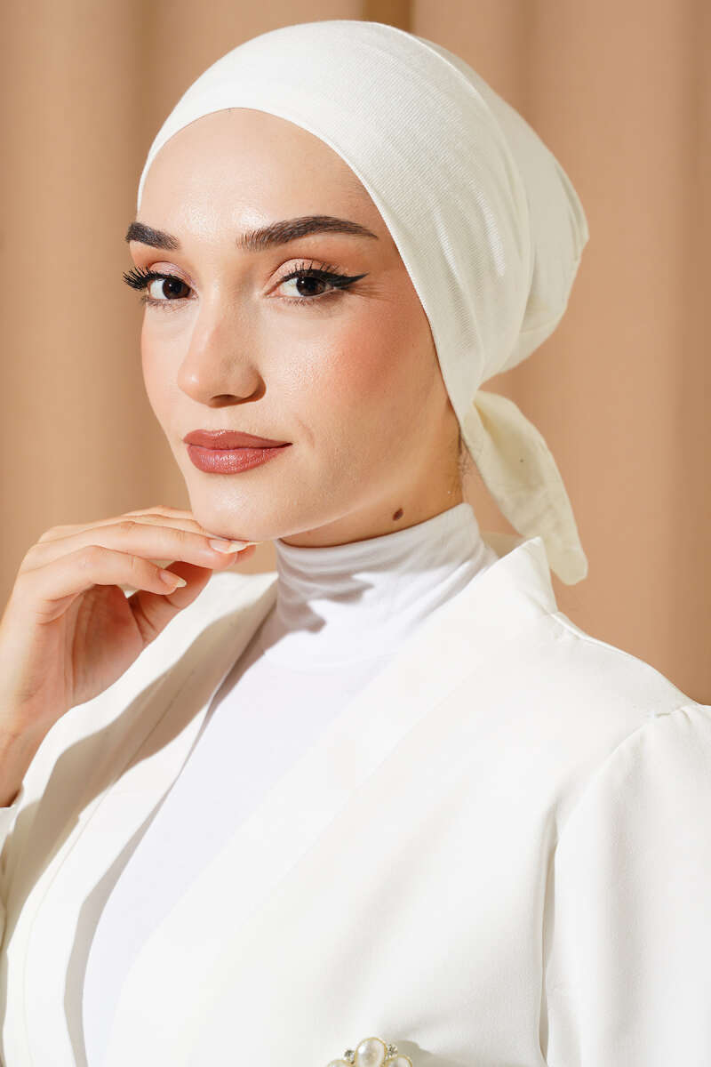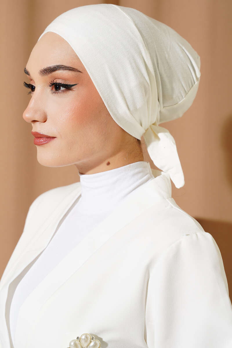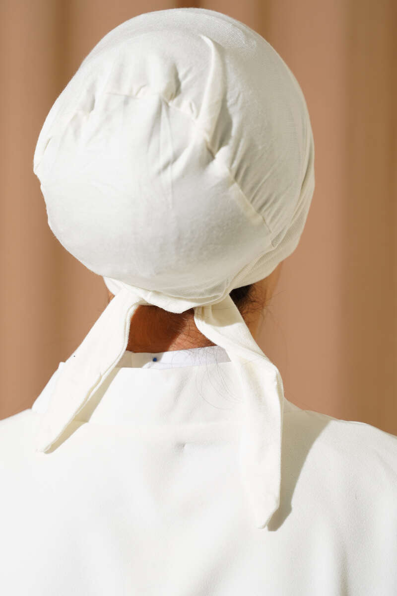 Kaymaz Silikonlu Bağlamalı Bone Ekru