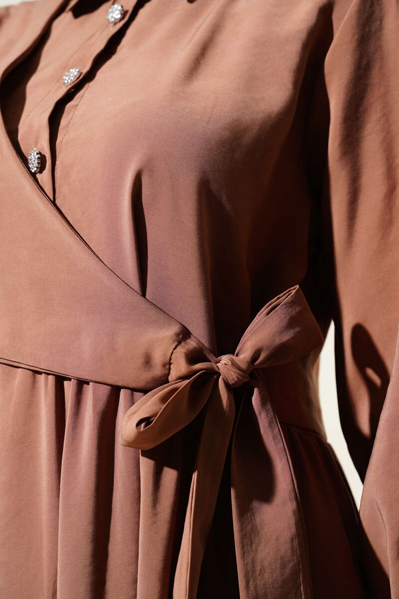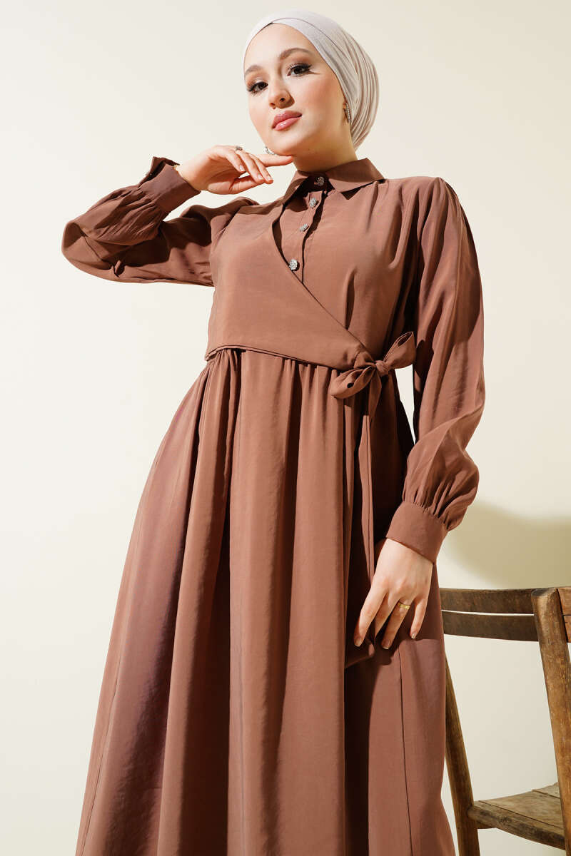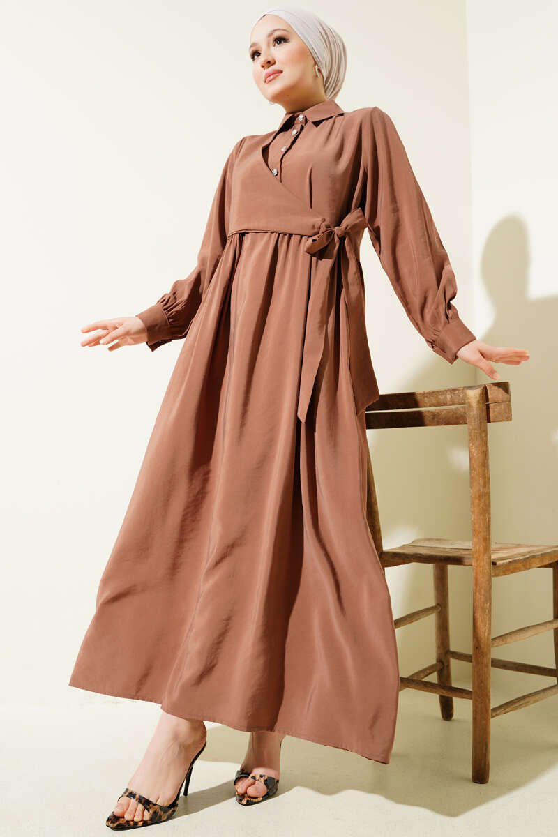 Bilek Bağlamalı Kuşaklı Abiye Elbise Haki