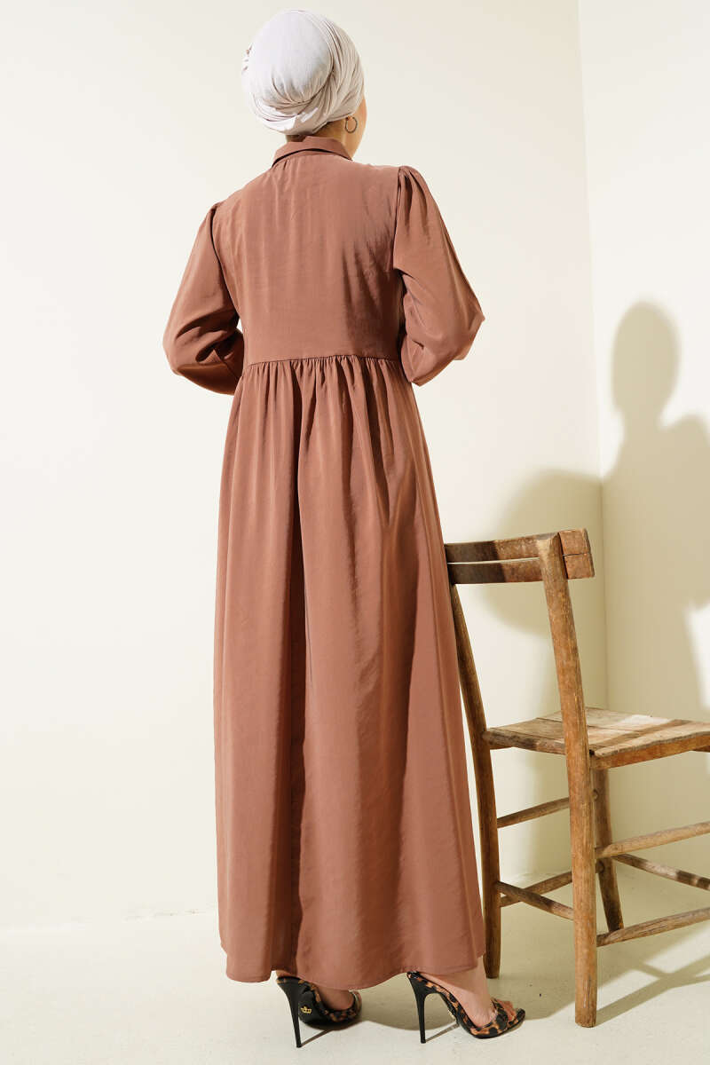 Pelerin Detaylı Pileli Triko Elbise Kahve