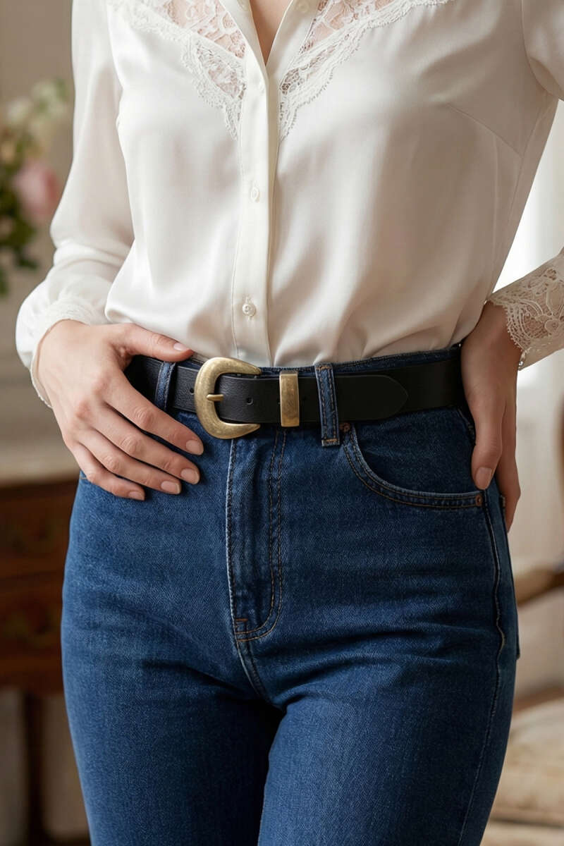Beli Lastikli Kuşaklı Kot Pantolon Füme