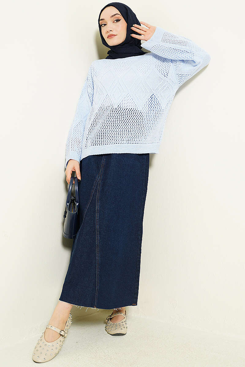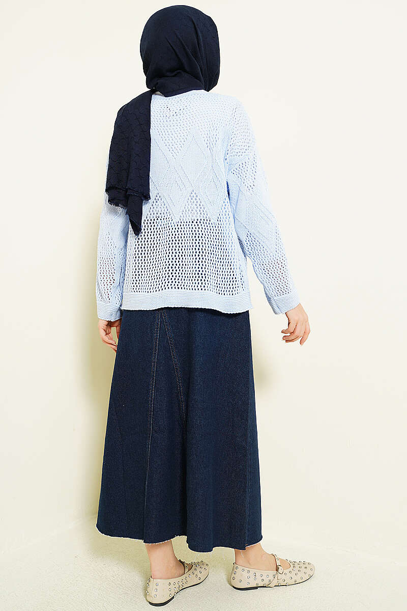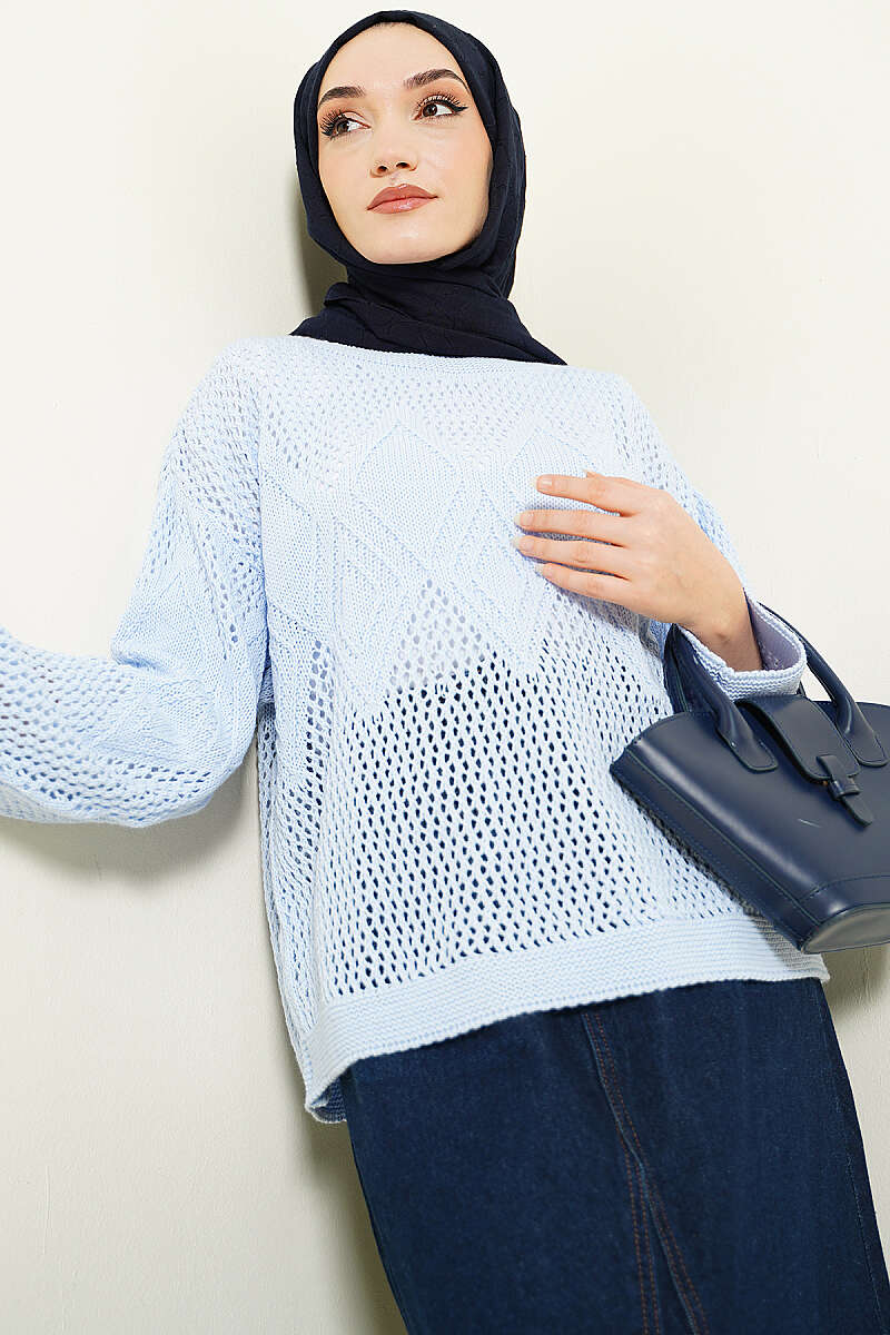 Baklava Desen Ajurlu Triko Kazak Bebe Mavi