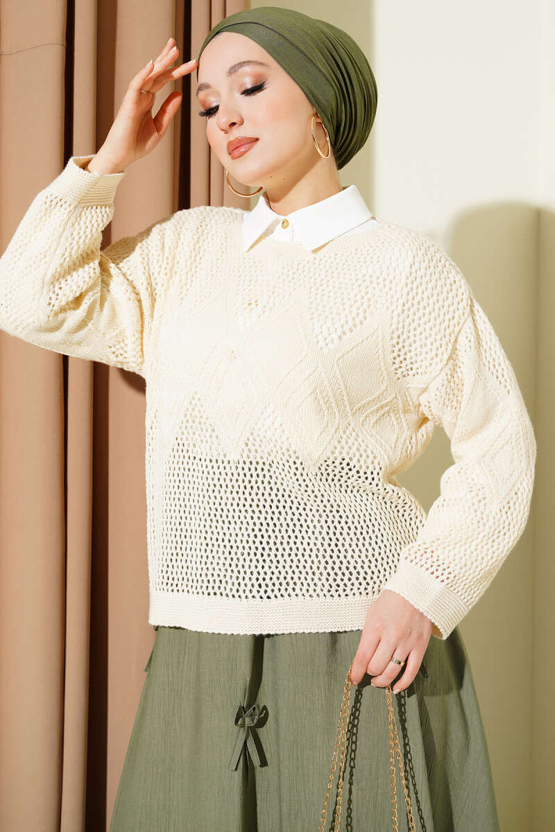 Yarasa Kol Basic Loyşa Tunik Ekru