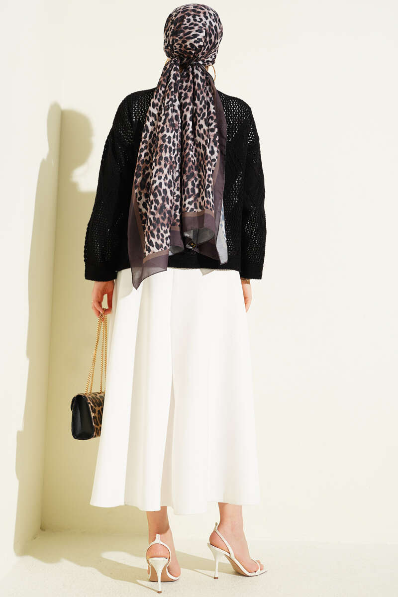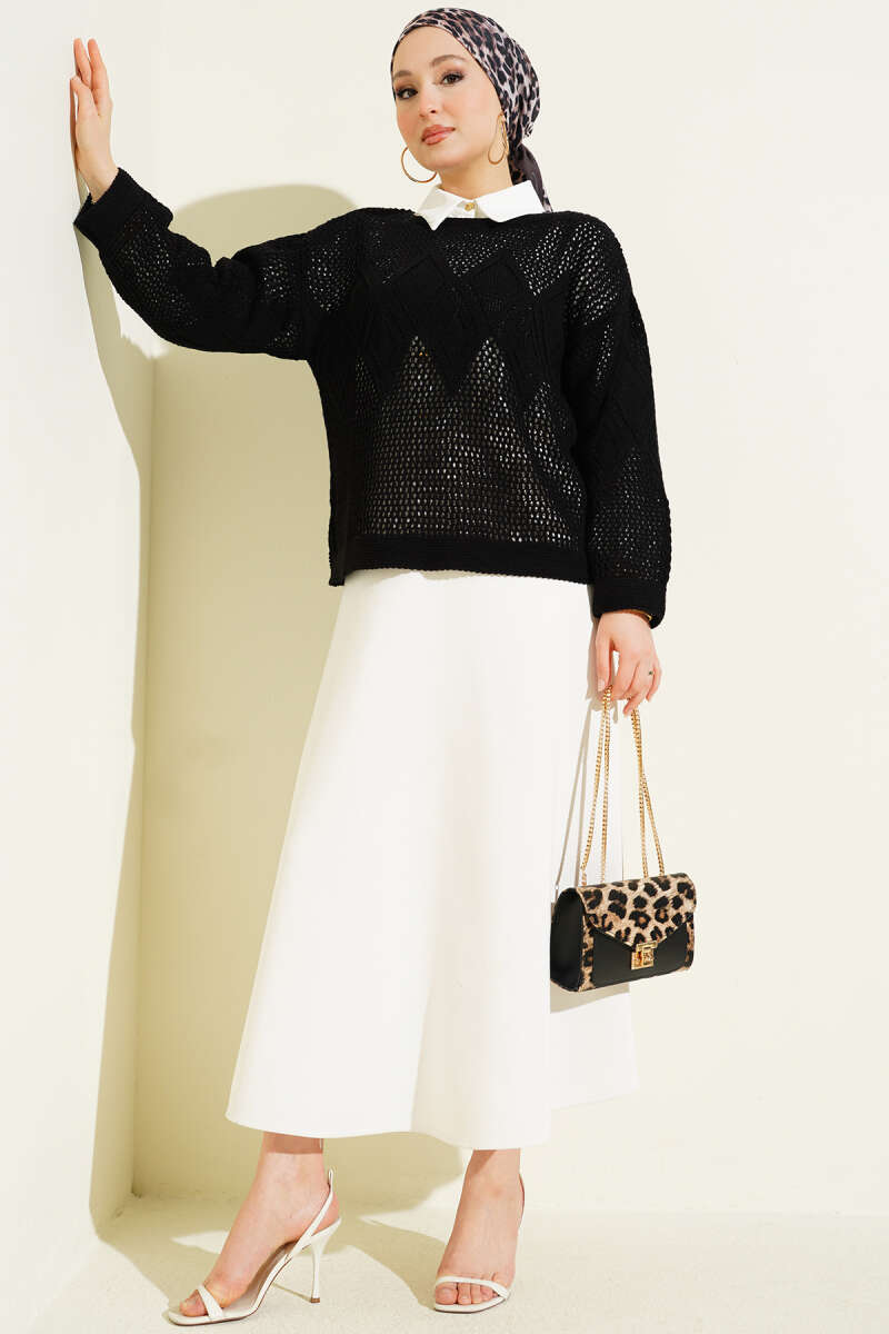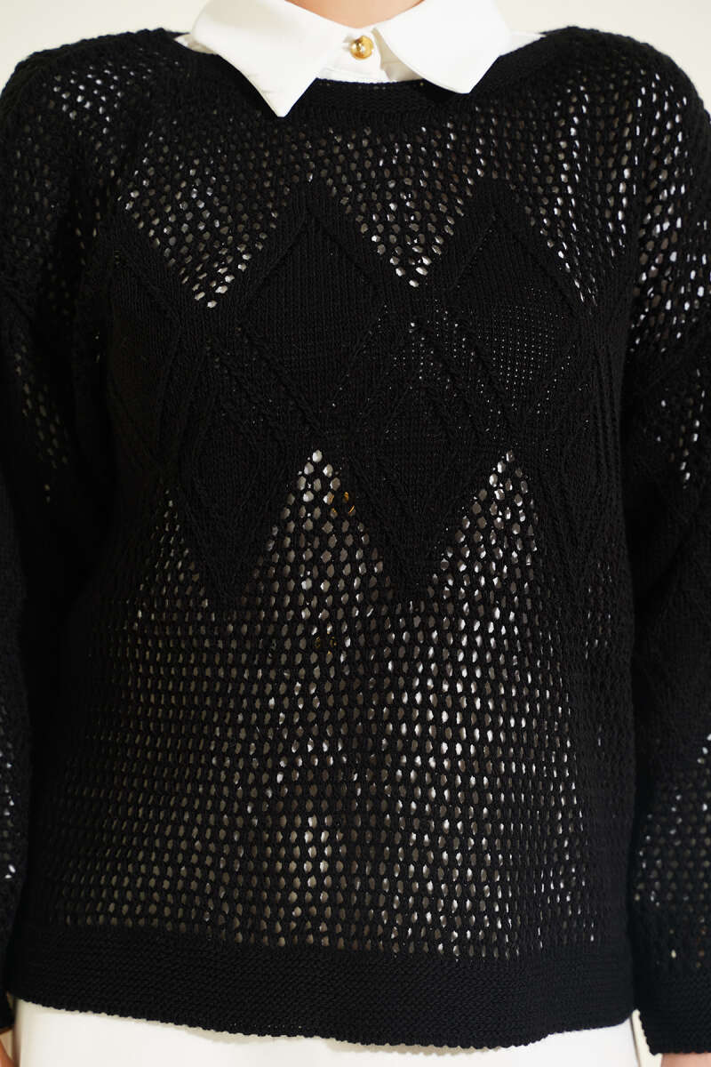 Baklava Desen Ajurlu Triko Kazak Siyah