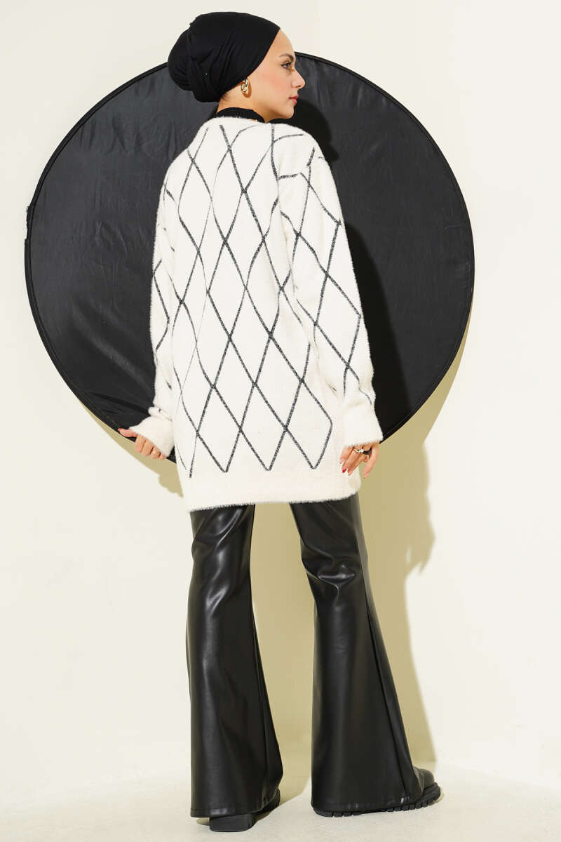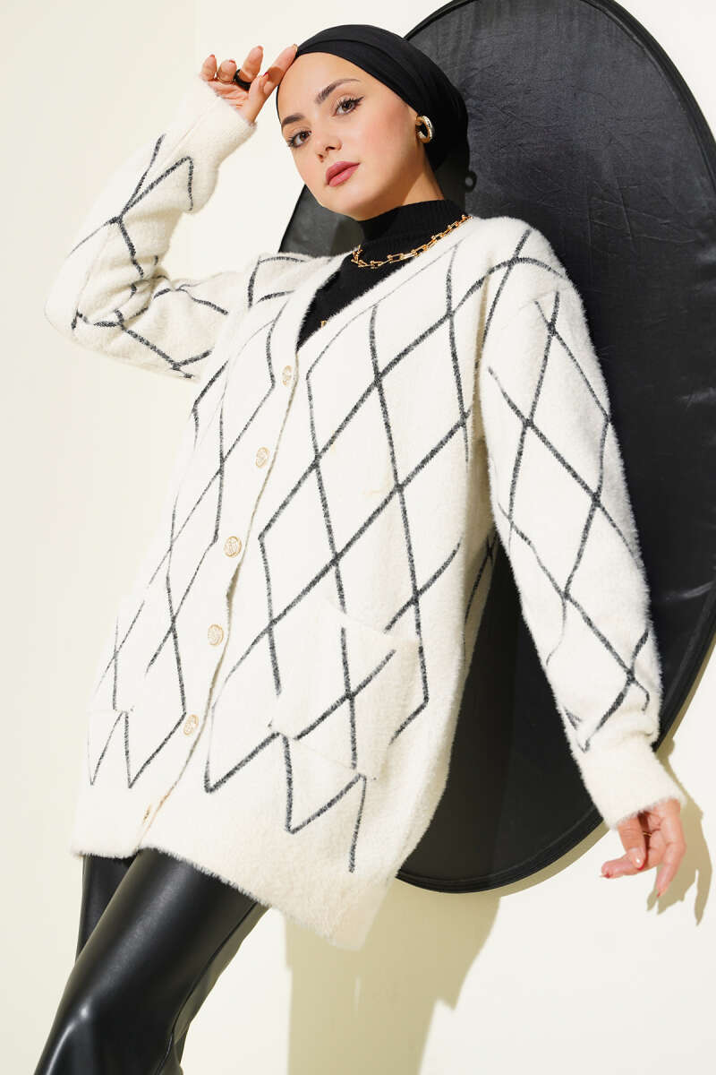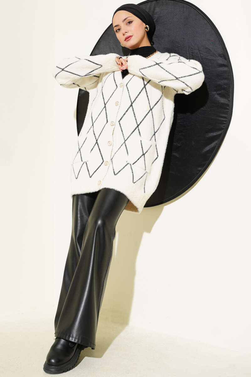 Çift Cepli Sakallı Hırka Latte