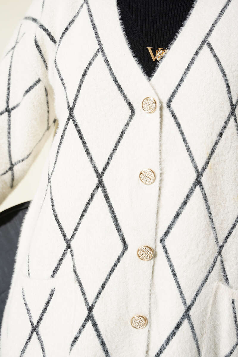 Saç Örgülü Düğmeli Triko Hırka Latte