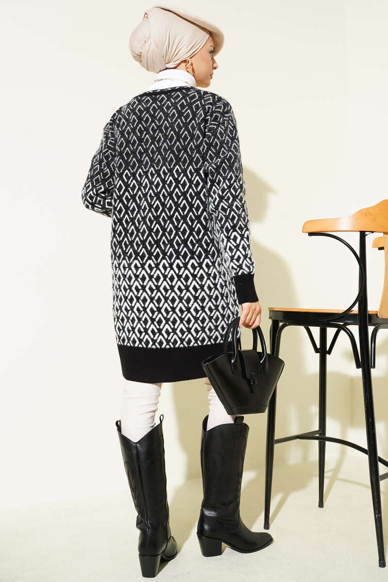 Zikzak Desenli Gold Düğmeli Triko Hırka Siyah