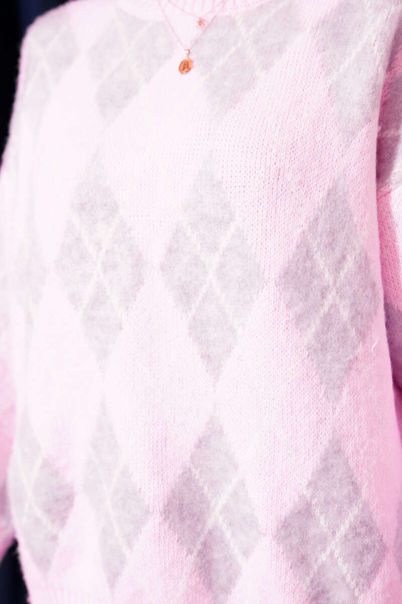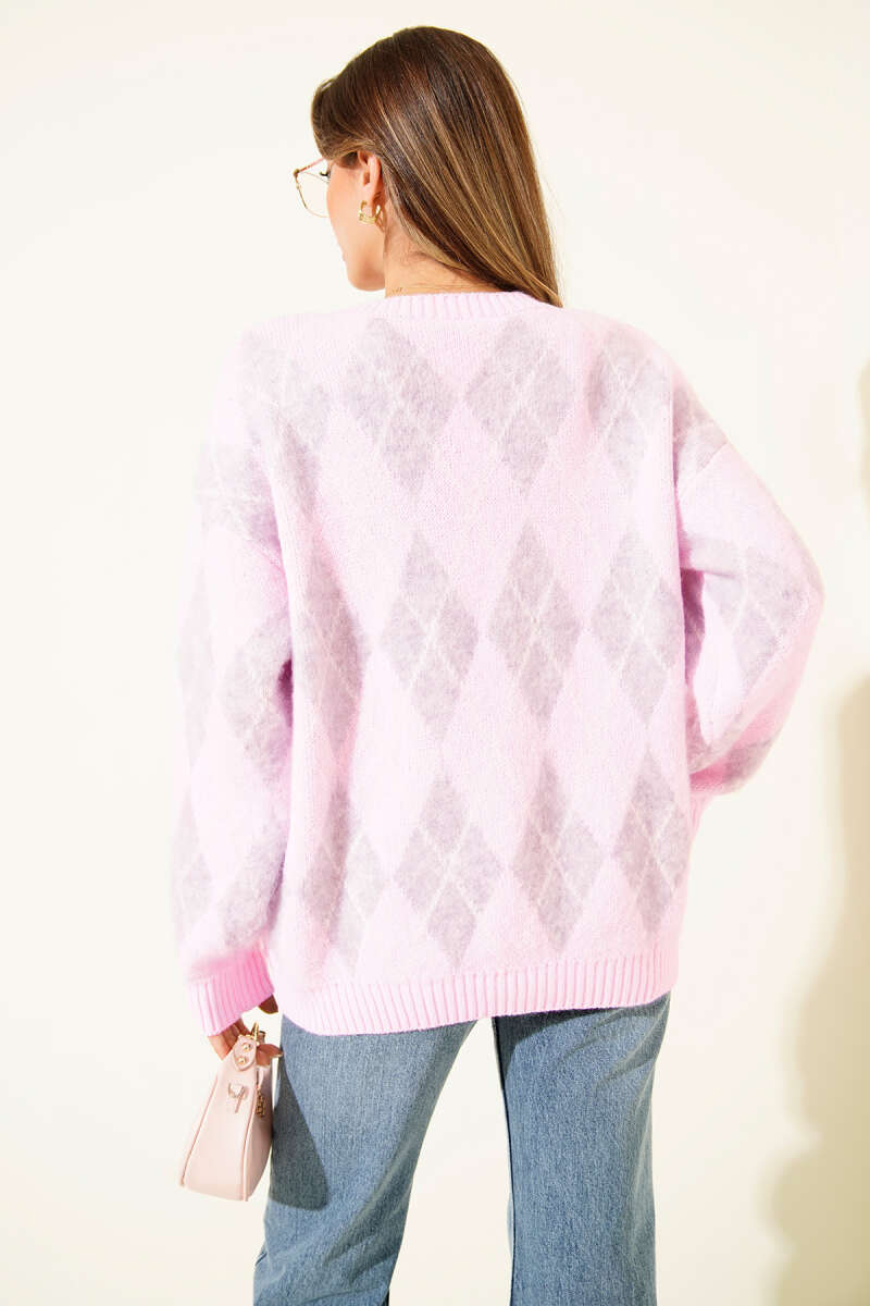 Bisiklet Yaka Örgü Yumoş Kazak Pembe